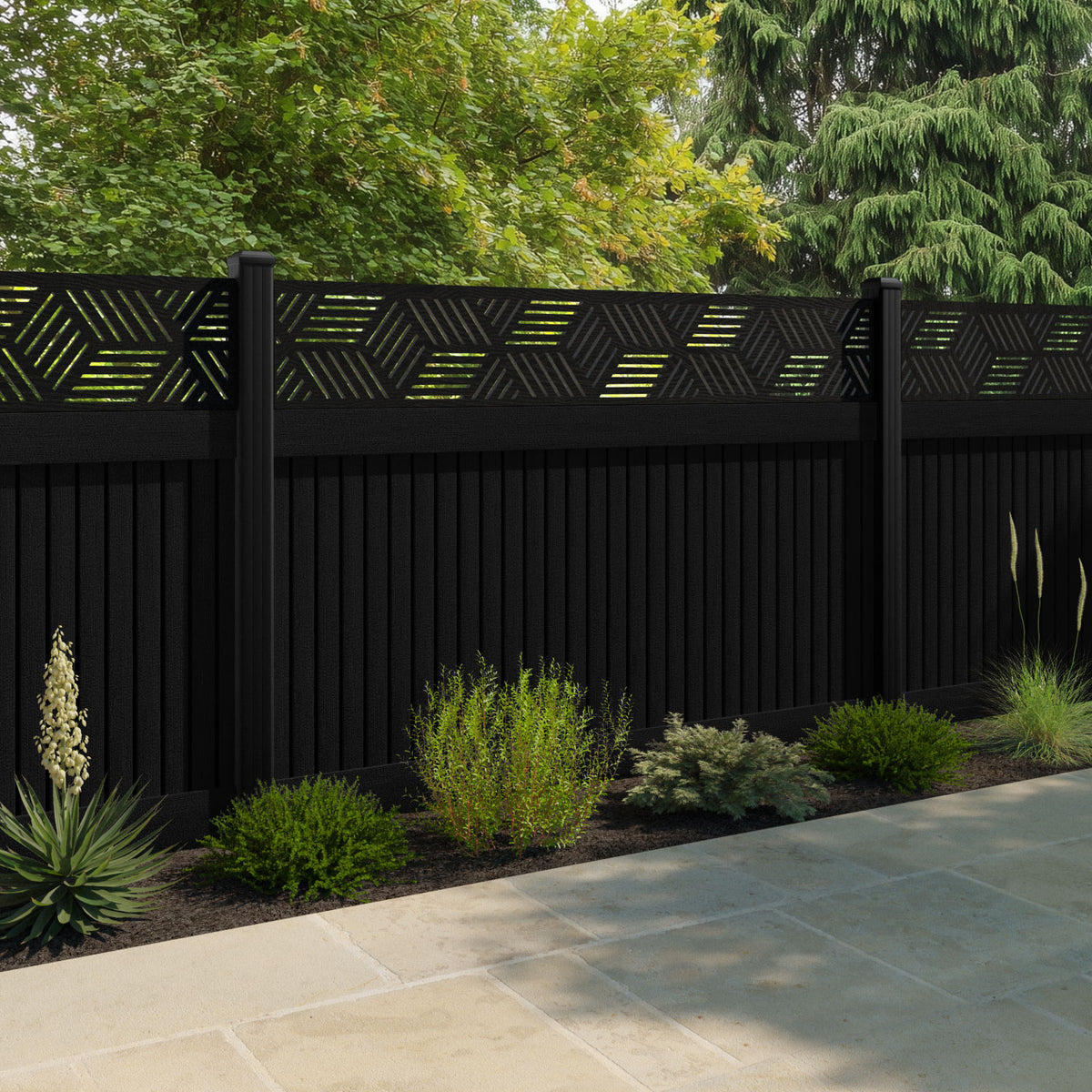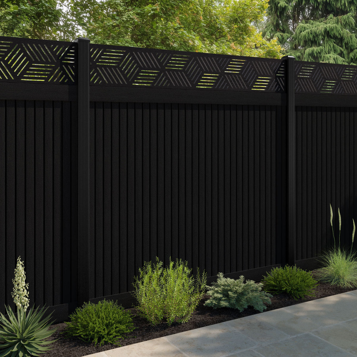 Virtis Cubed Fence Panel Black - with our aluminium posts