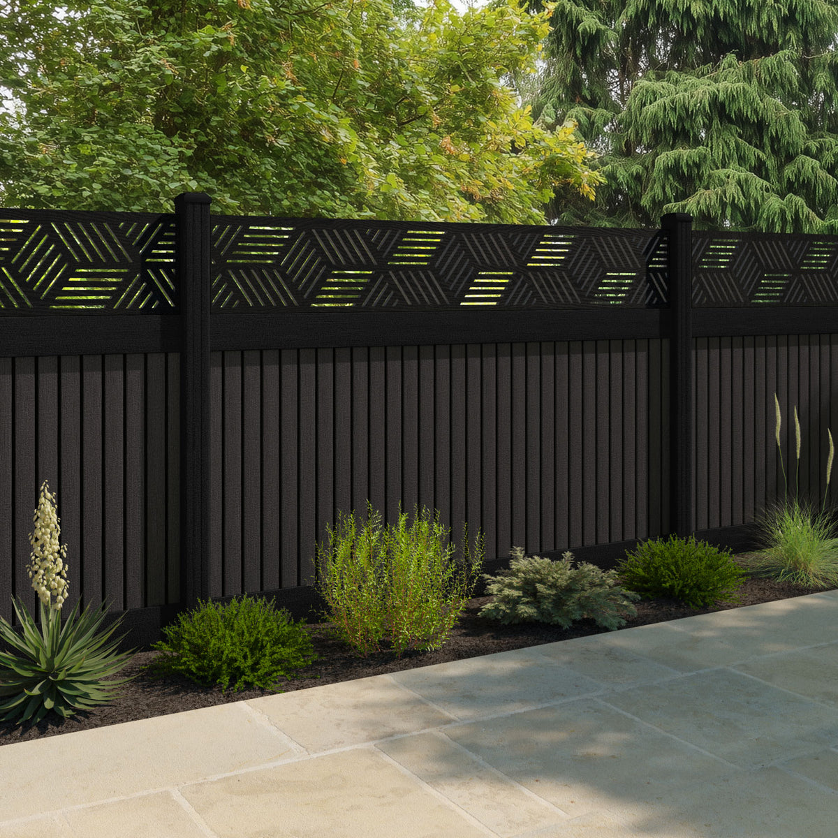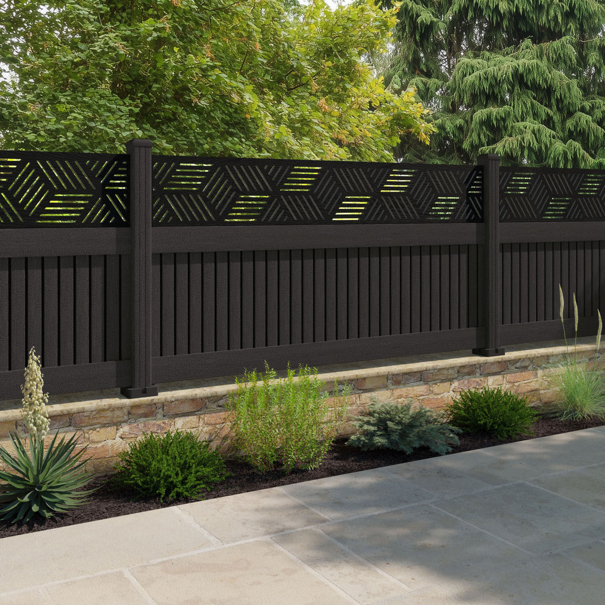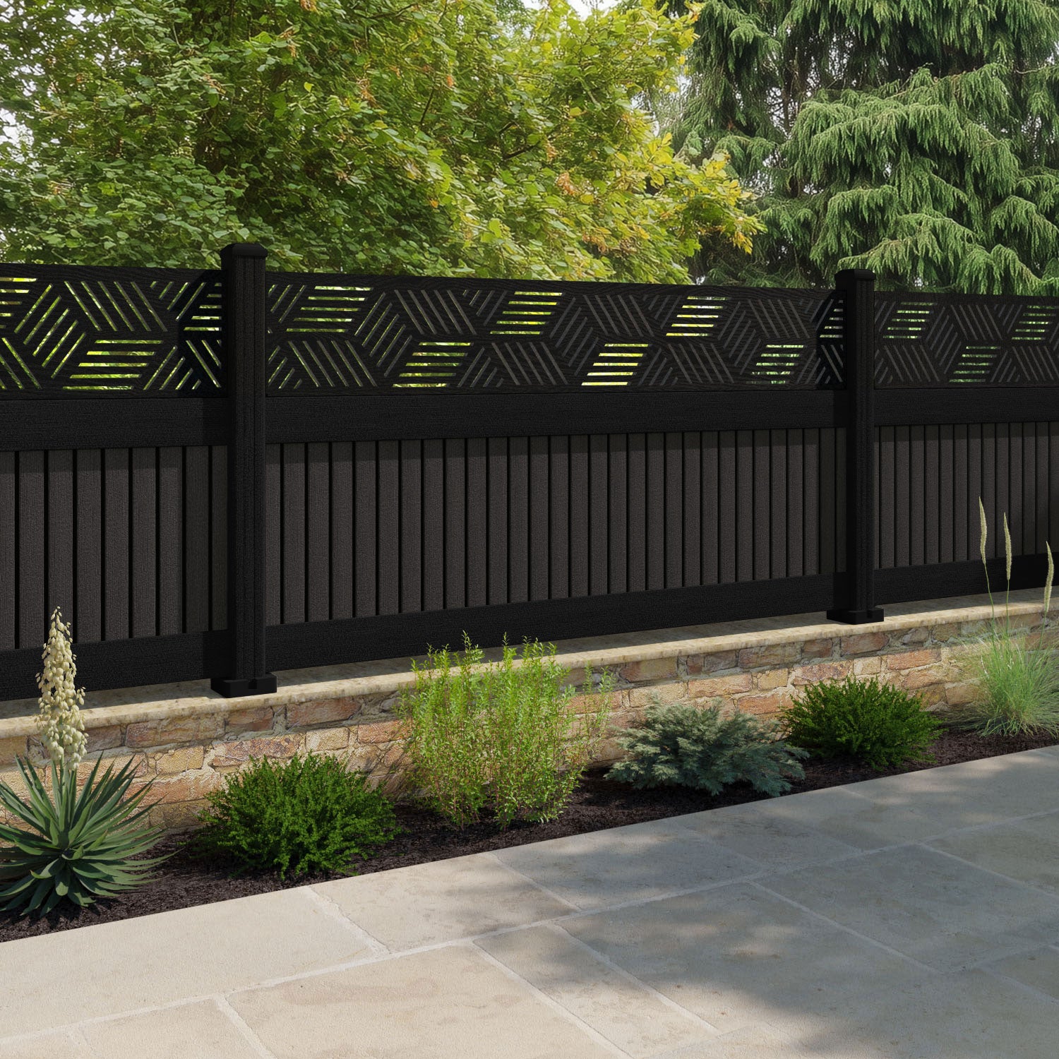 Virtis Cubed Fence Panel Dark Oak - with our composite posts