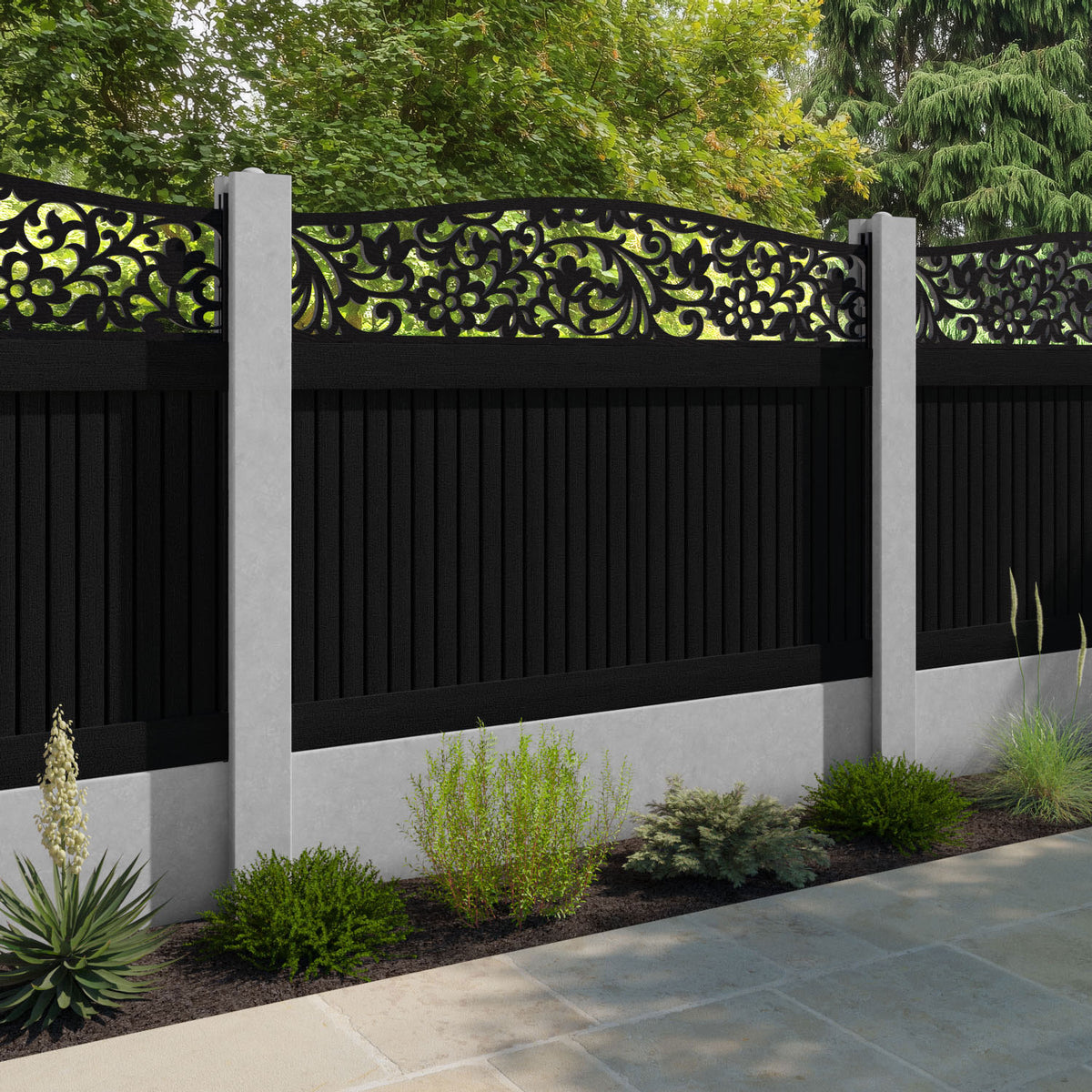 Virtis Eden Curved Top Fence Panel Black - for existing concrete posts