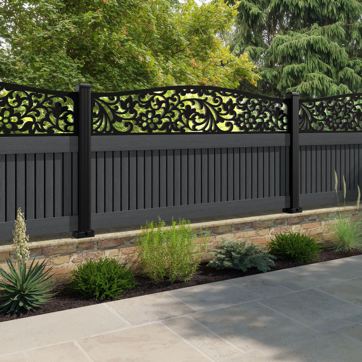 Virtis Eden Curved Top Fence Panel Dark Grey - with our aluminium posts