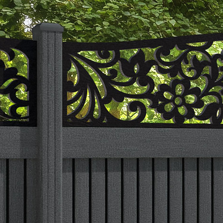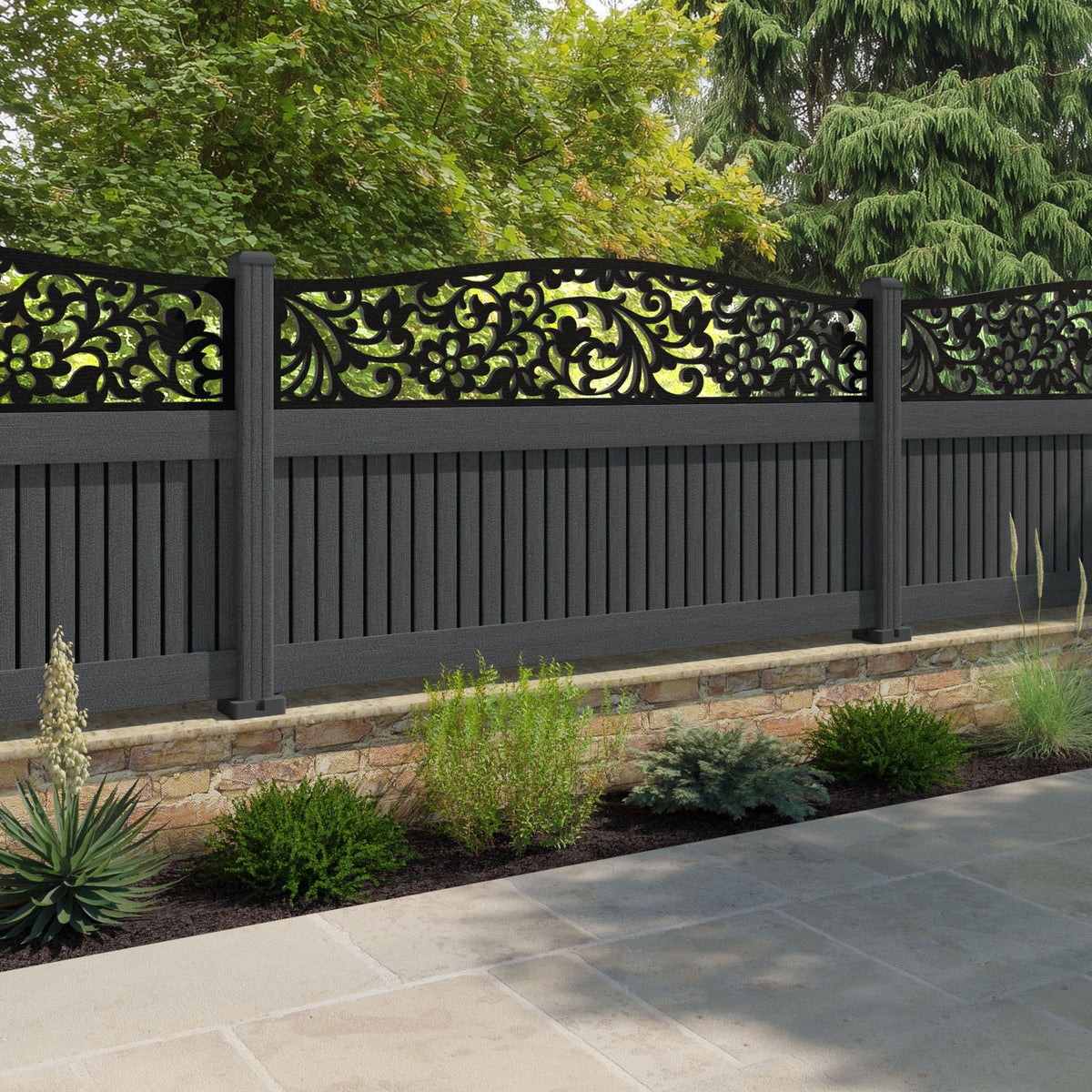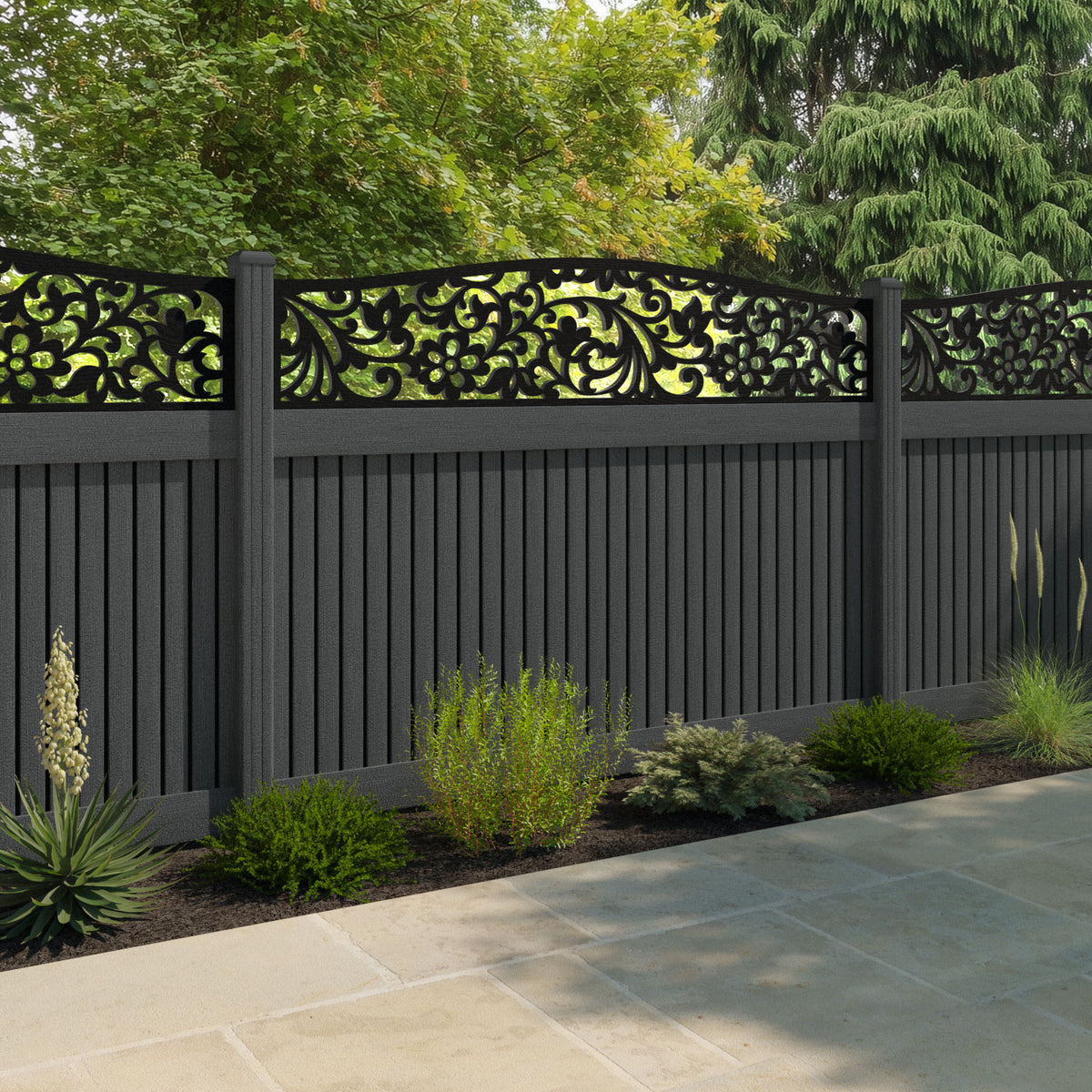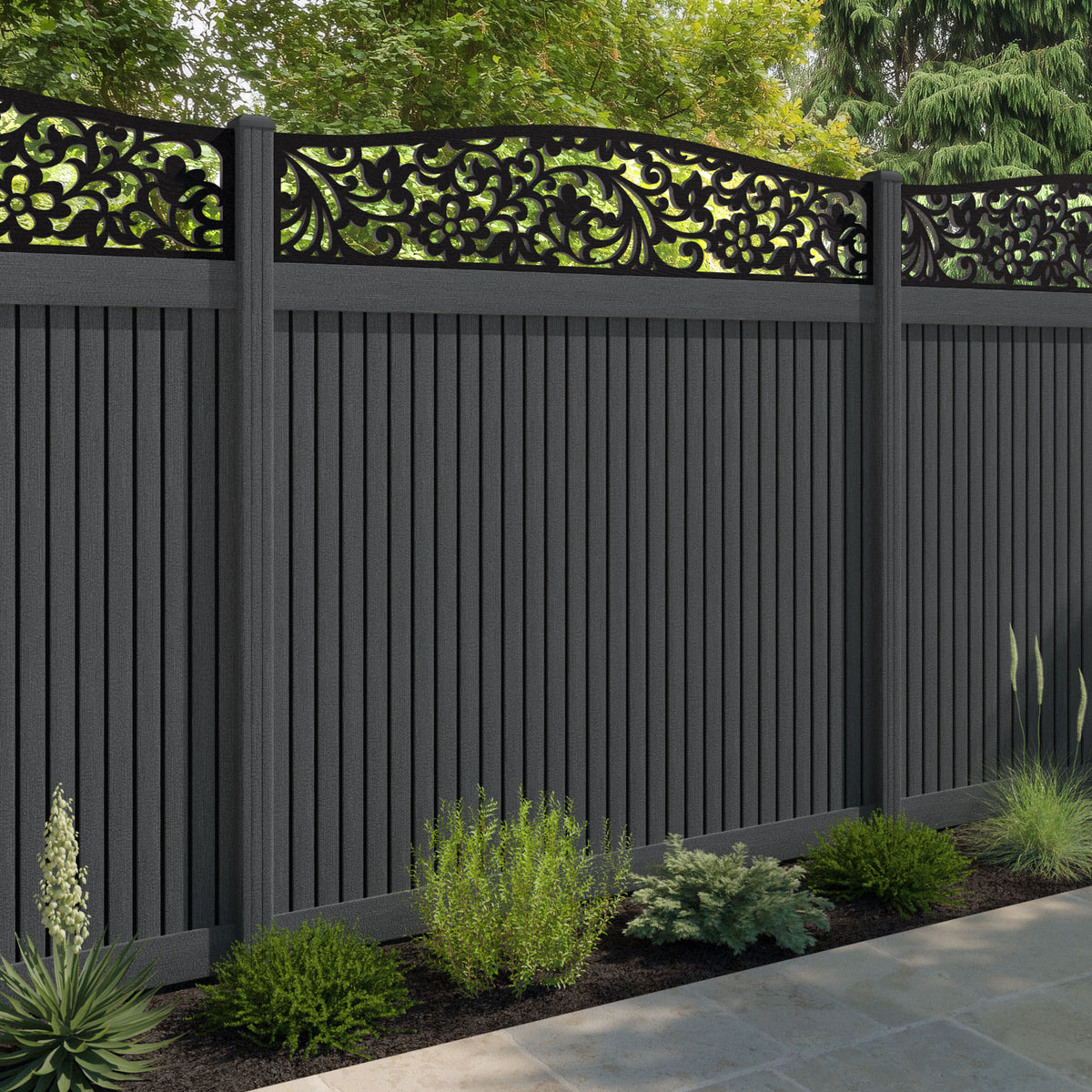Virtis Eden Curved Top Fence Panel Dark Grey - with our composite posts