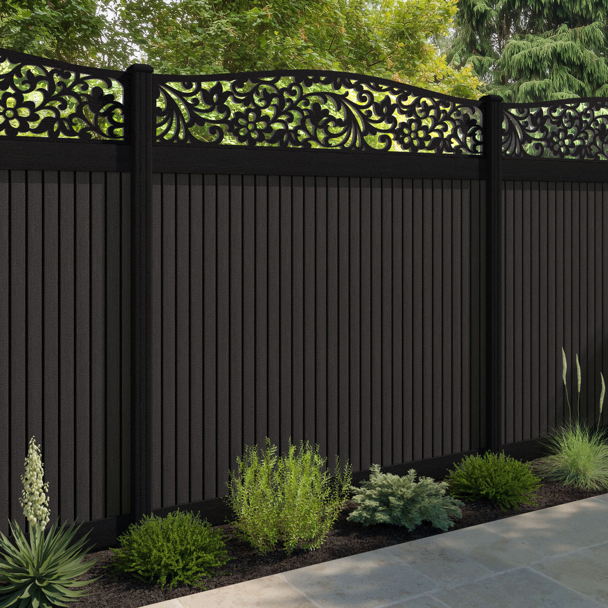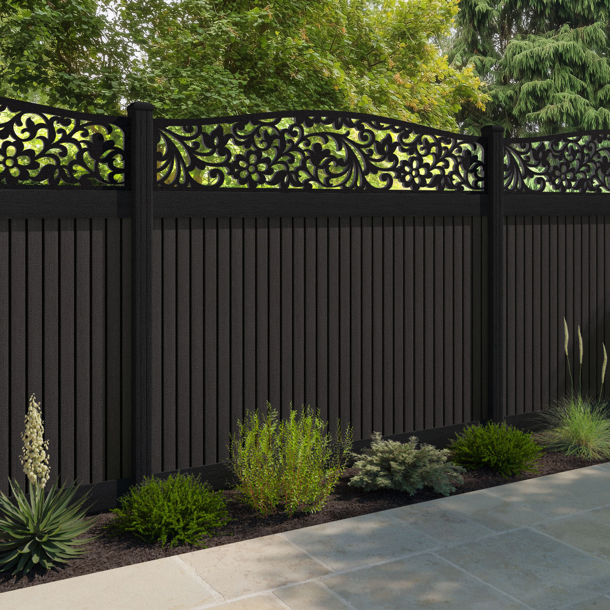 Virtis Eden Curved Top Fence Panel Dark Oak - with our aluminium posts
