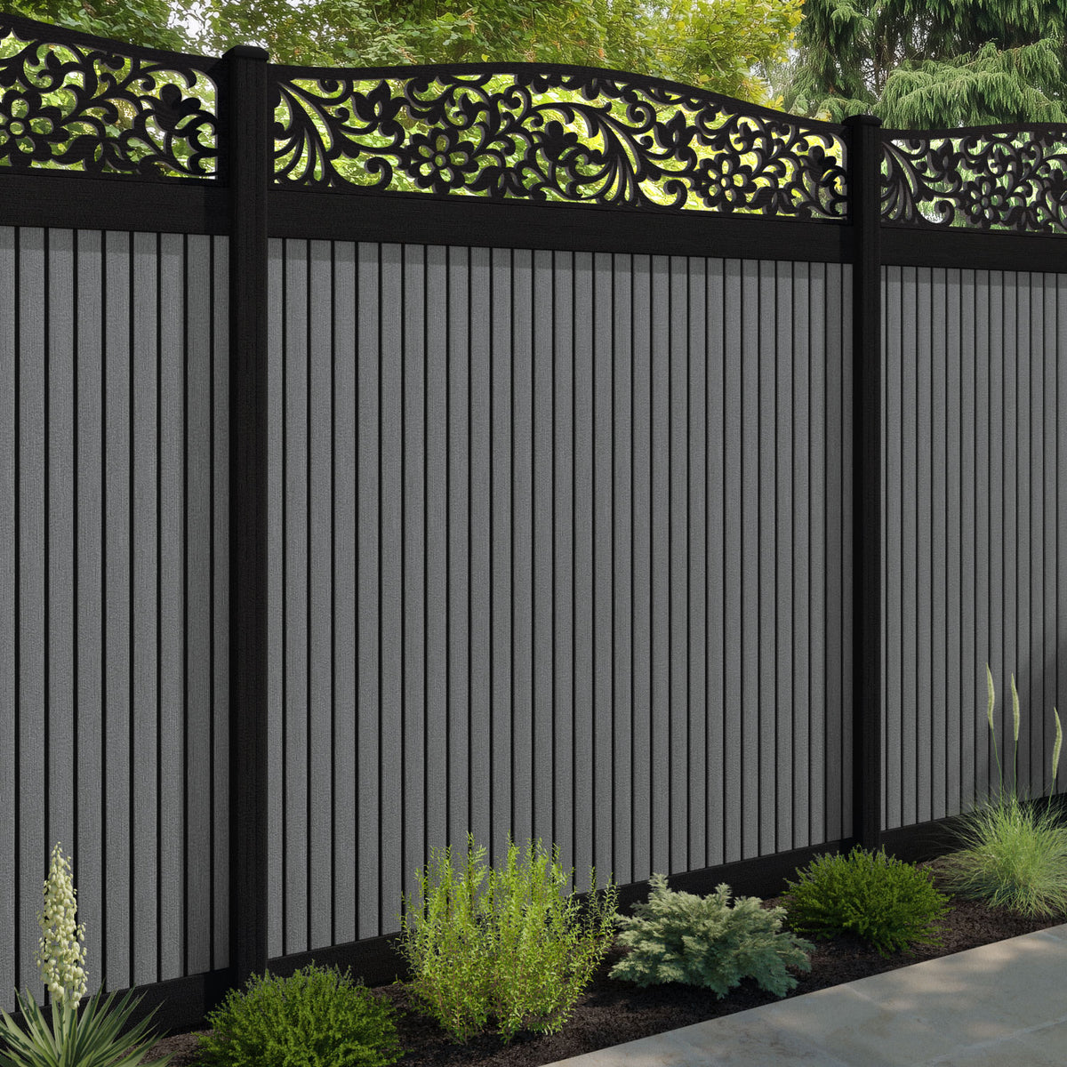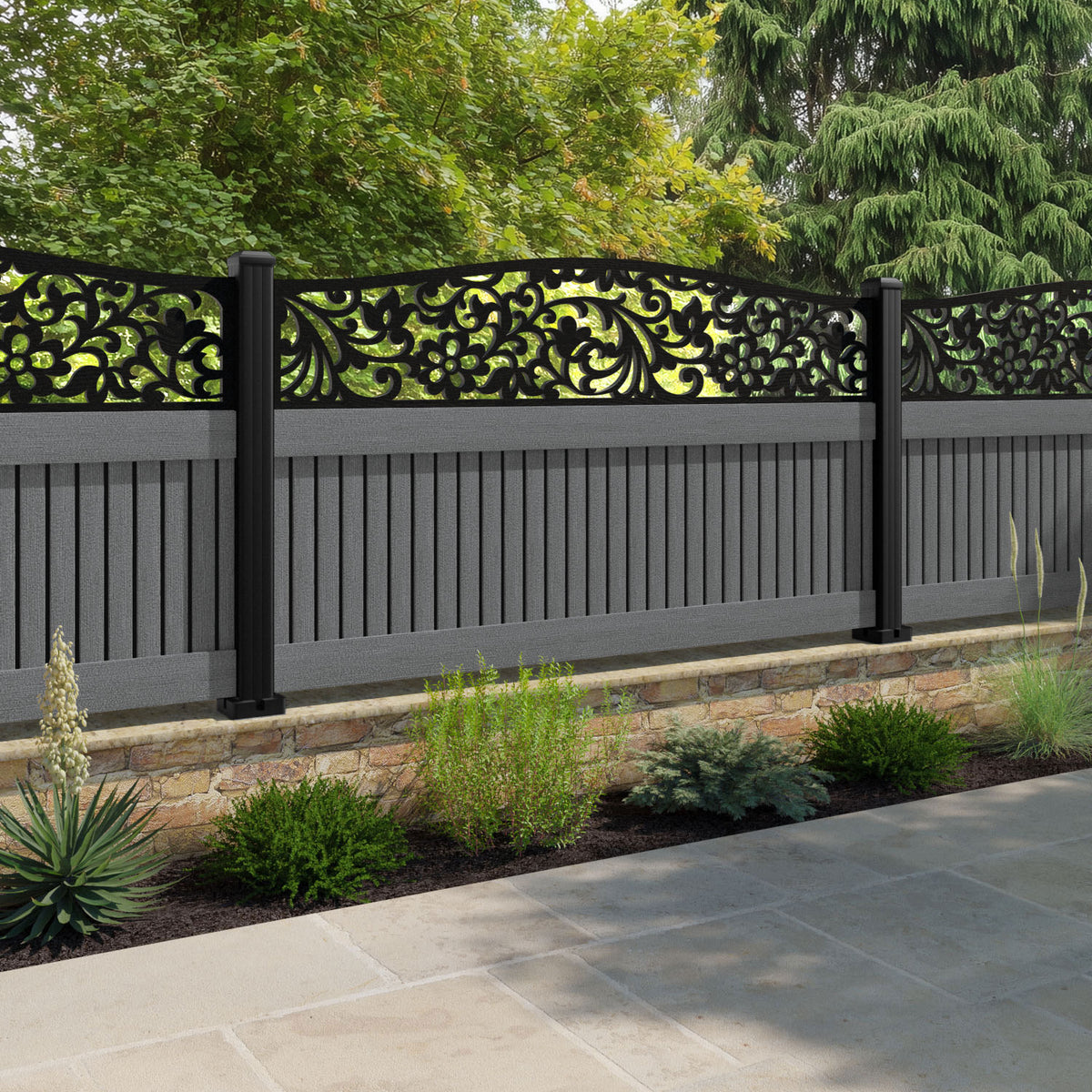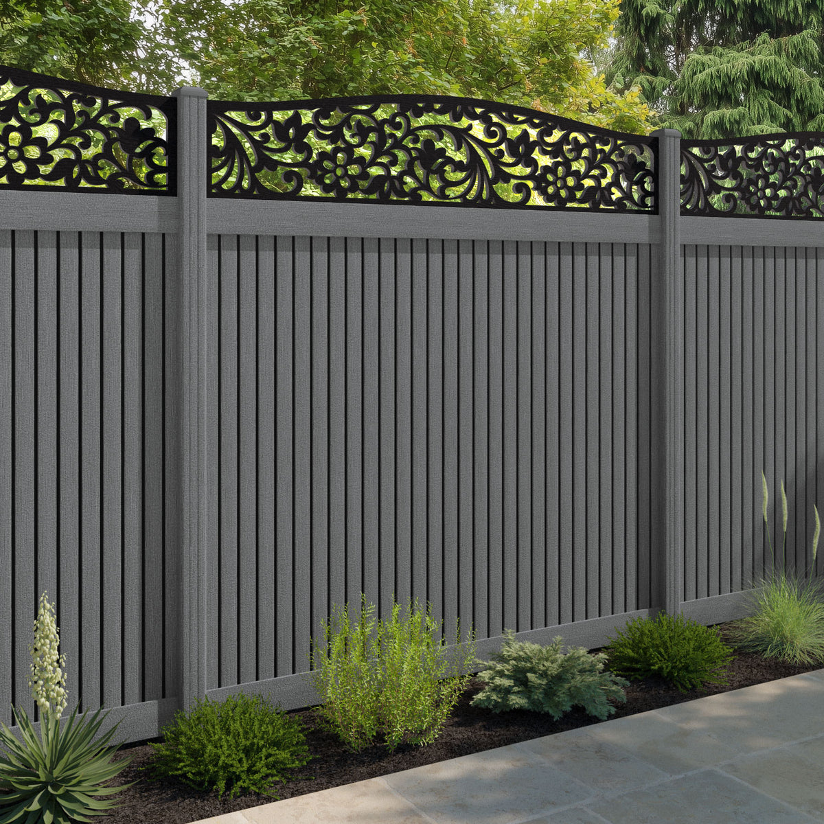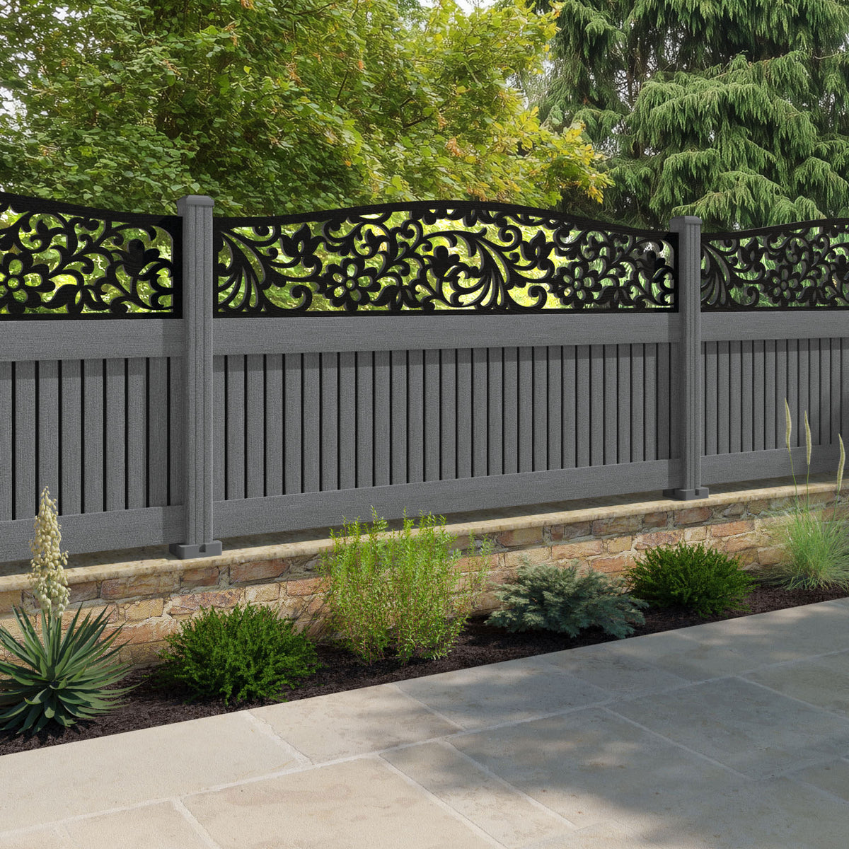 Virtis Eden Curved Top Fence Panel Mid Grey - with our composite posts