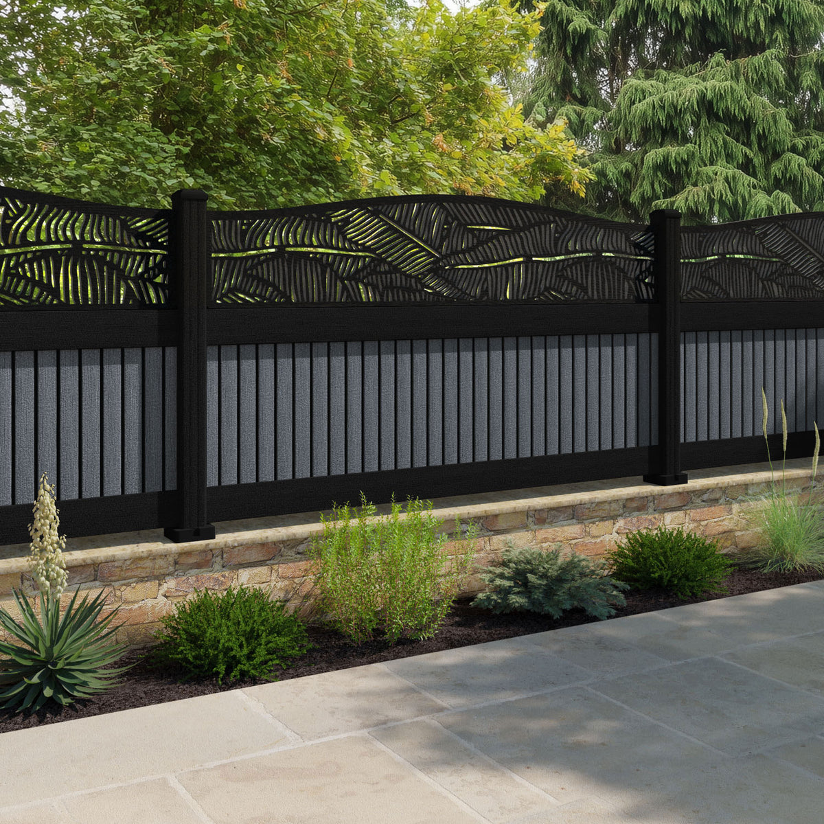 Virtis Feather Curved Top Fence Panel Anthracite - with our aluminium posts