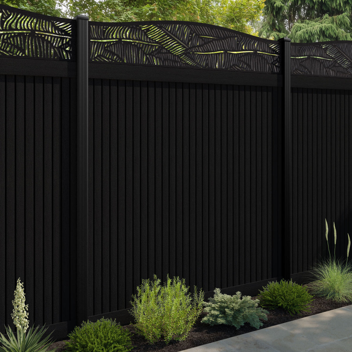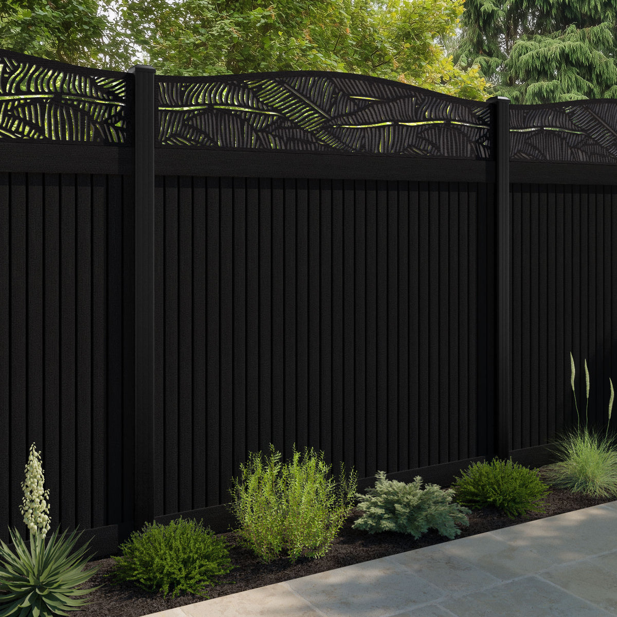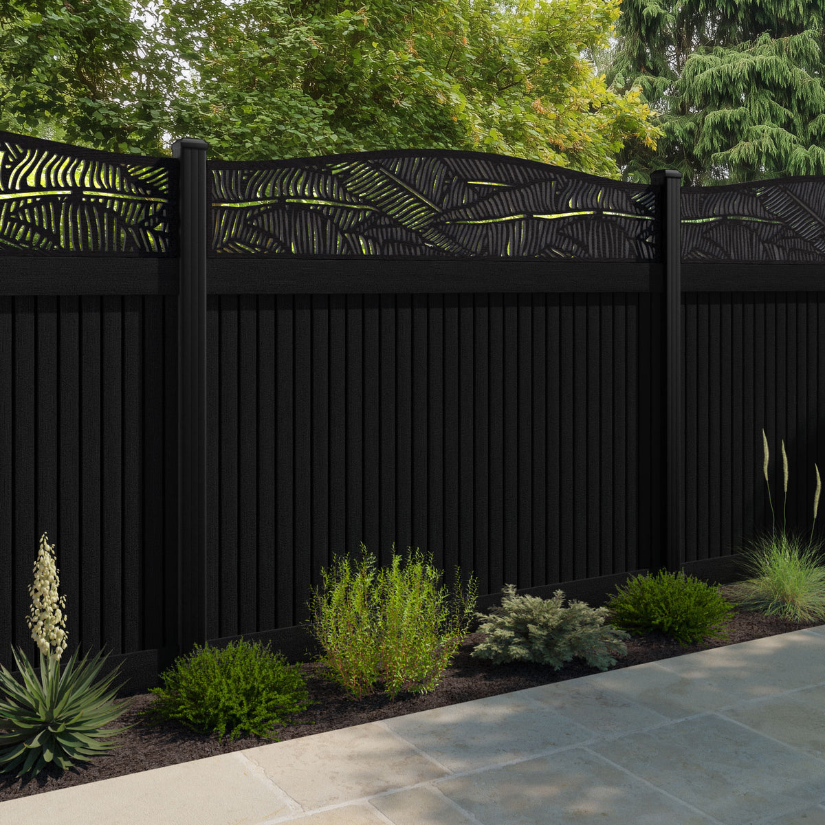 Virtis Feather Curved Top Fence Panel Black - with our aluminium posts