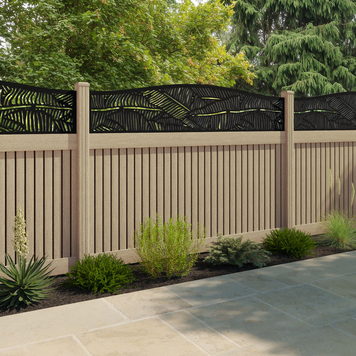 Virtis Feather Curved Top Fence Panel Light Oak - with our composite posts