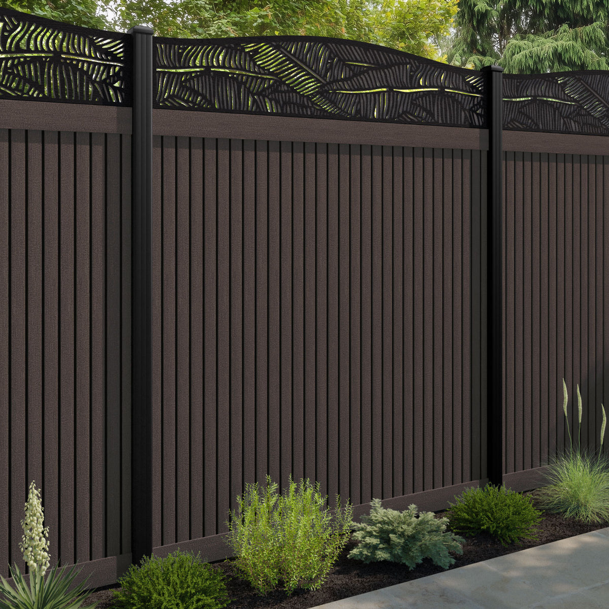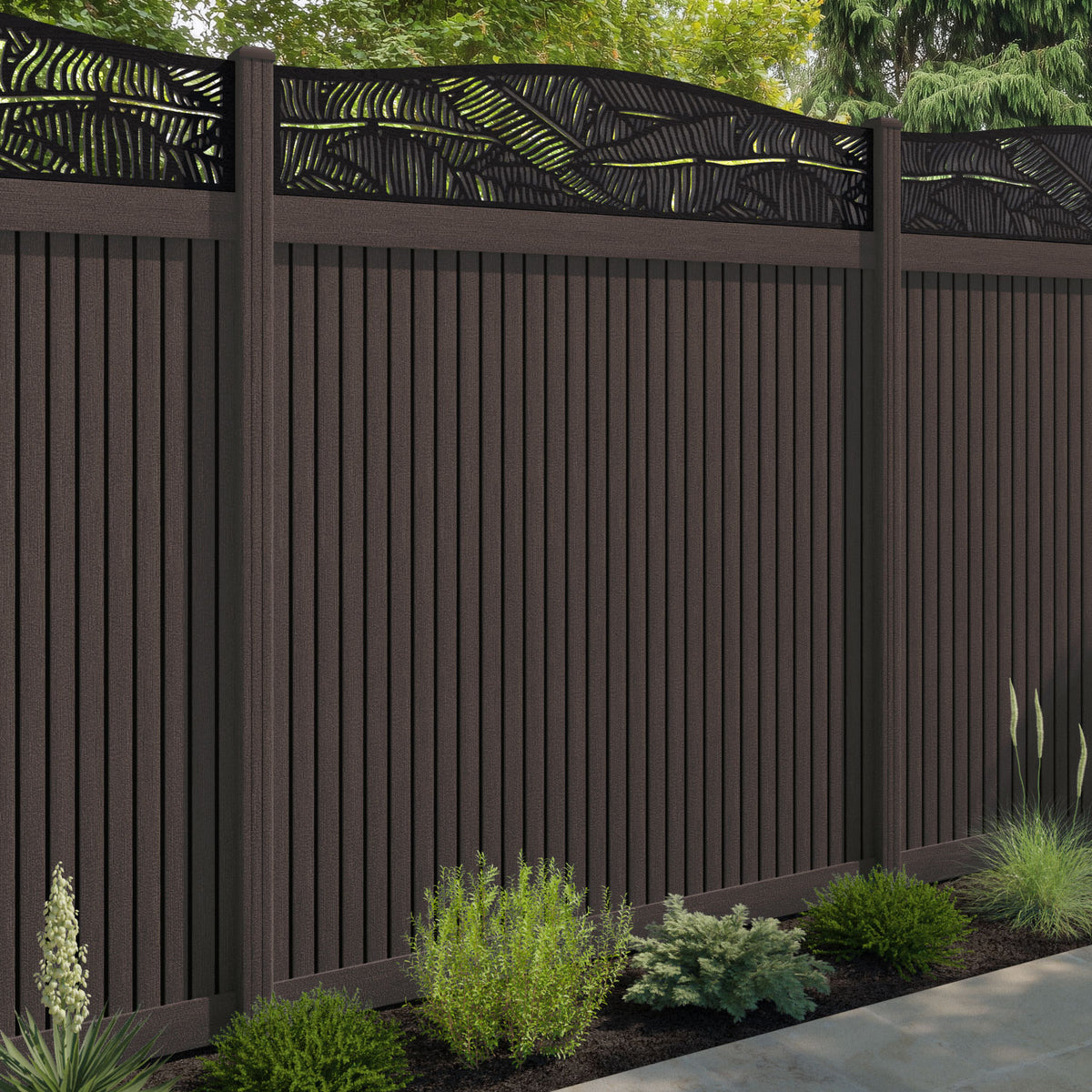 Virtis Feather Curved Top Fence Panel Mid Brown - with our composite posts