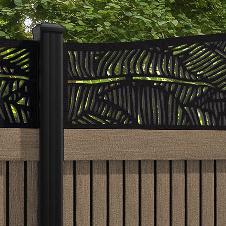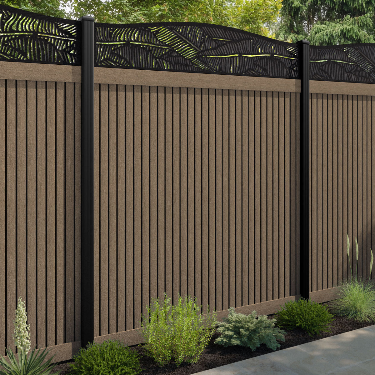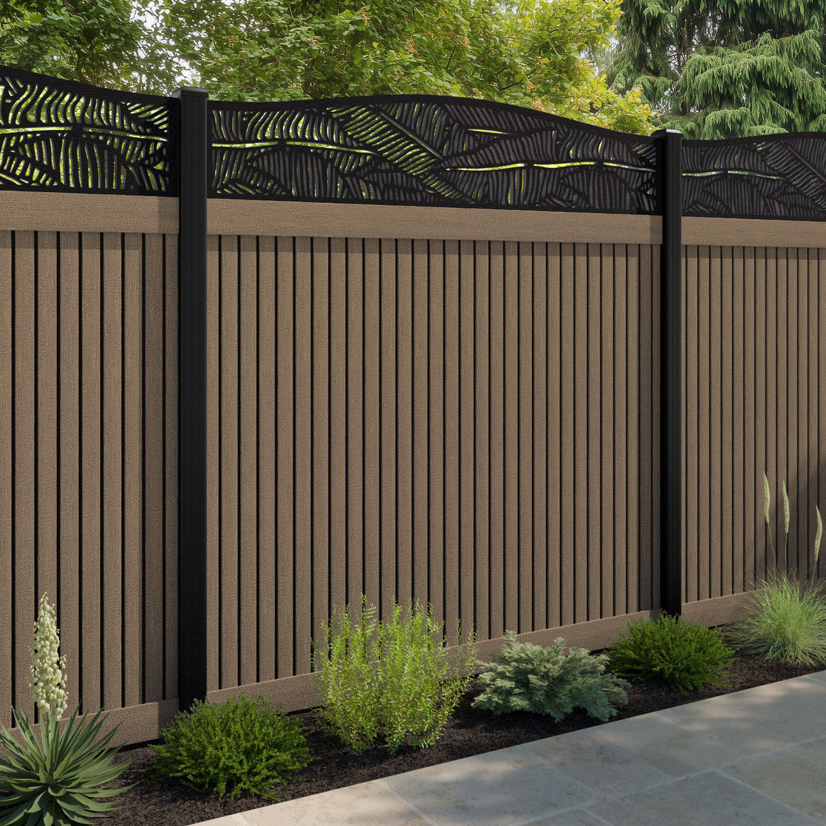 Virtis Feather Curved Top Fence Panel Teak - with our aluminium posts