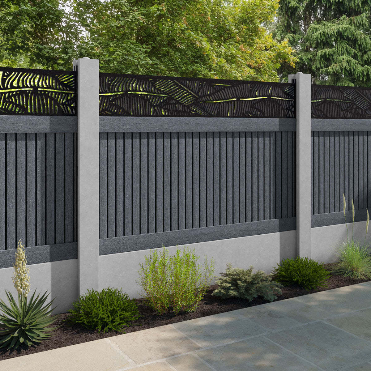 Virtis Feather Fence Panel Anthracite - for existing concrete posts