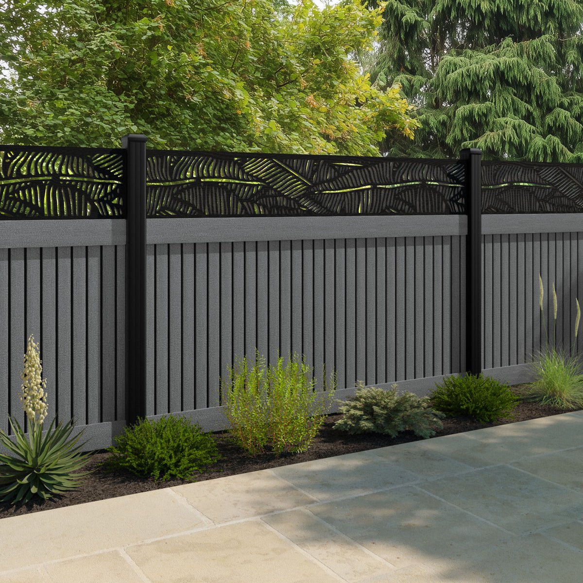 Virtis Feather Fence Panel Mid Grey - with our aluminium posts