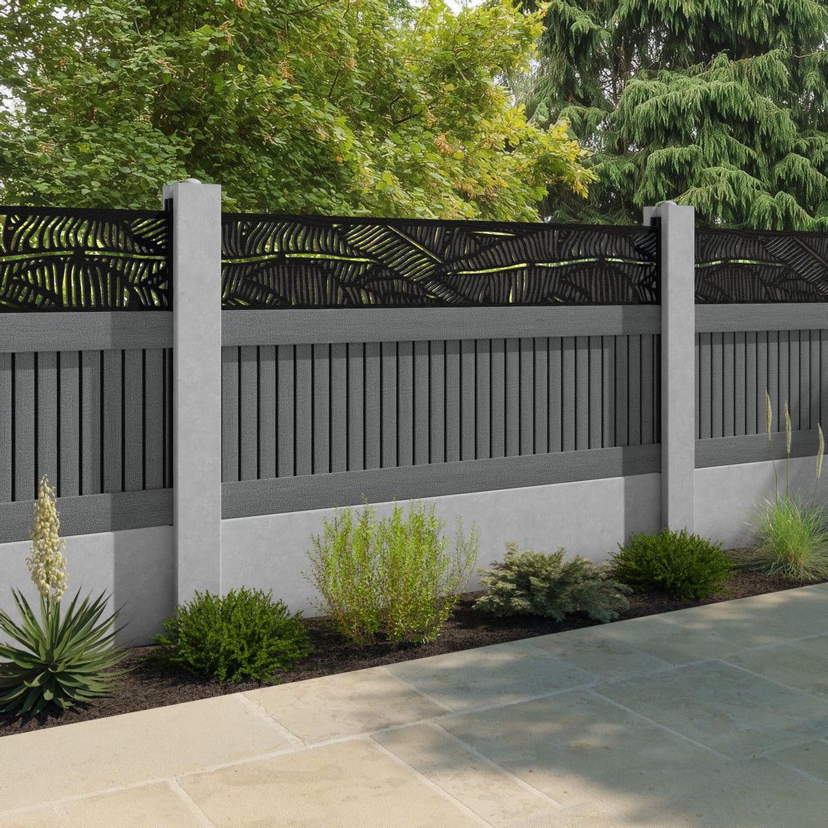 Virtis Feather Fence Panel Mid Grey - for existing concrete posts