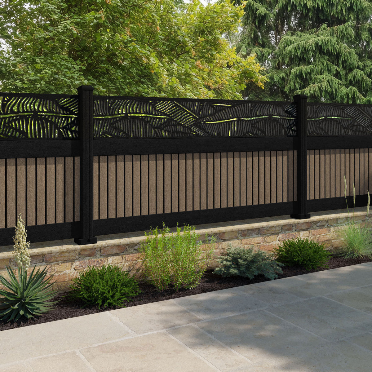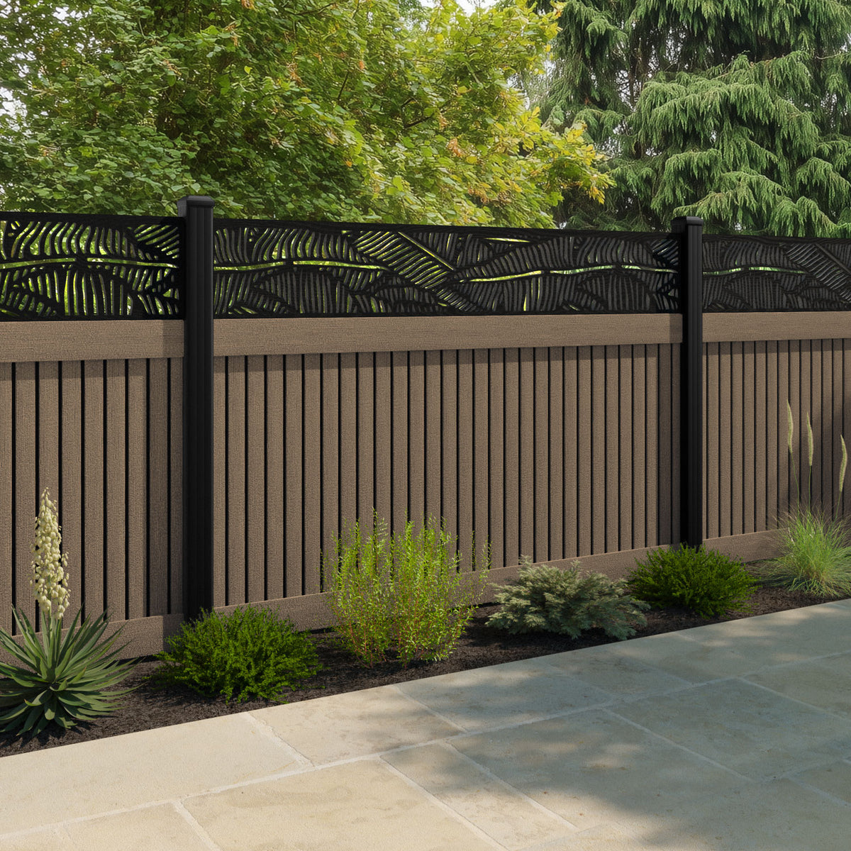 Virtis Feather Fence Panel Teak - with our aluminium posts