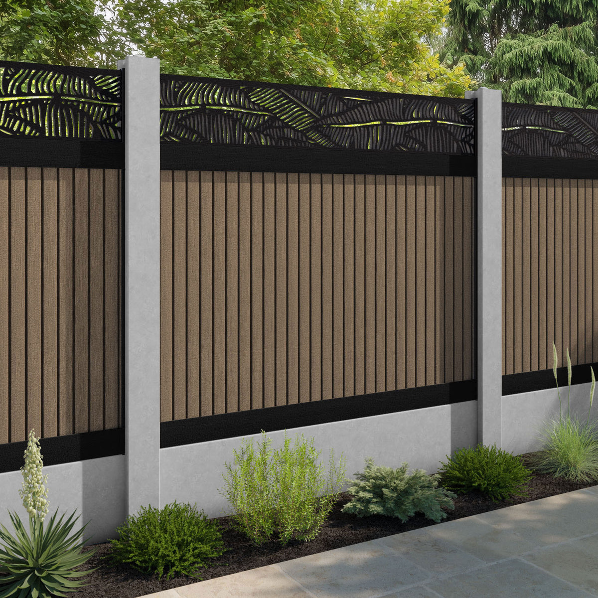 Virtis Feather Fence Panel Teak - for existing concrete posts