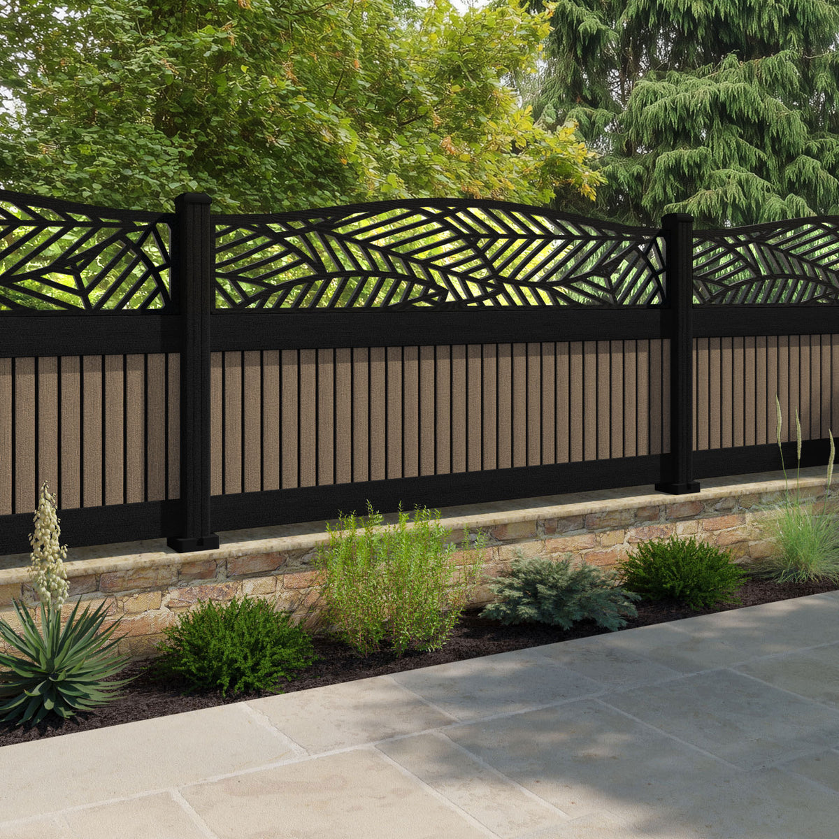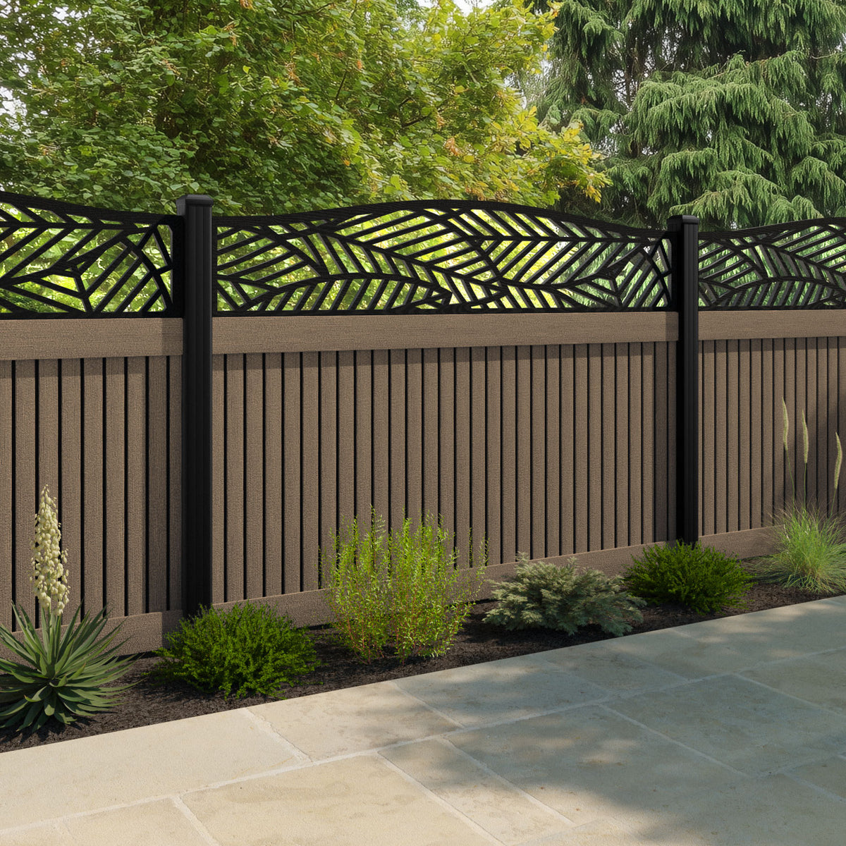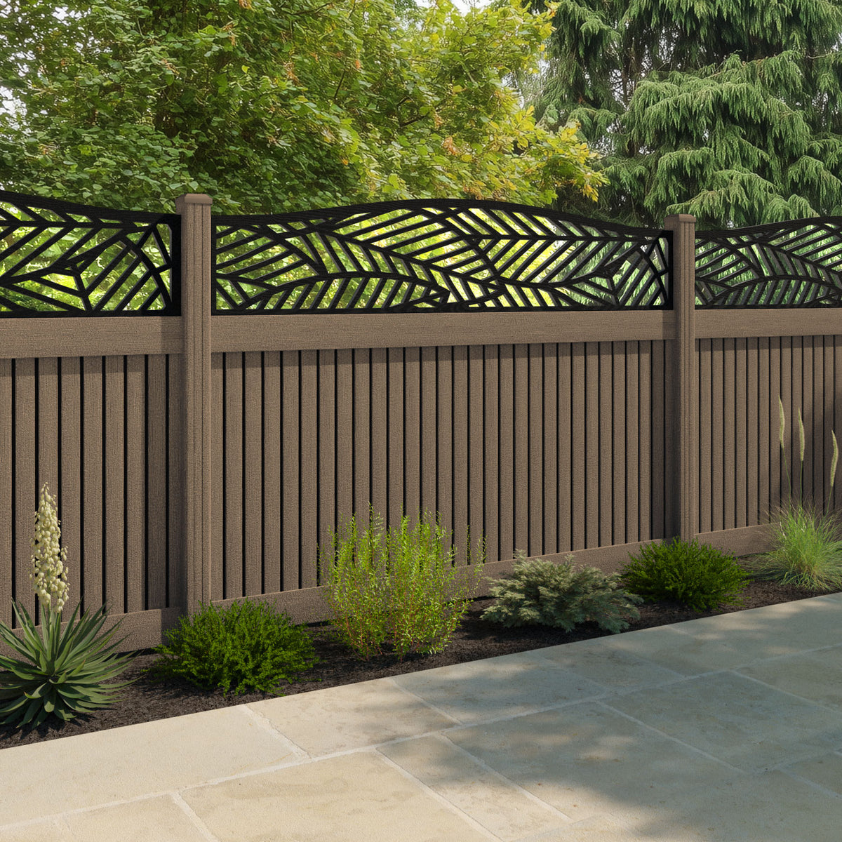 Virtis Habitat Curved Top Fence Panel Teak - with our composite posts