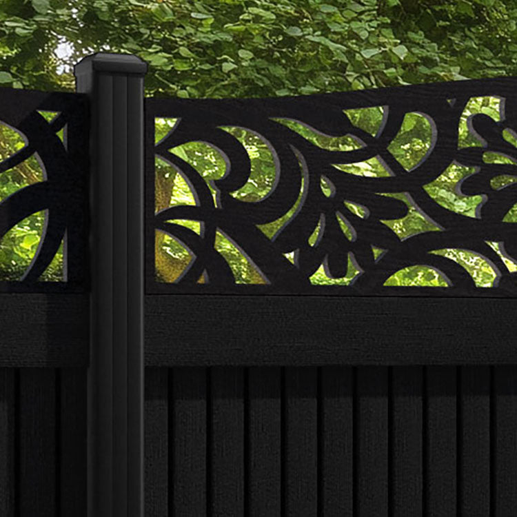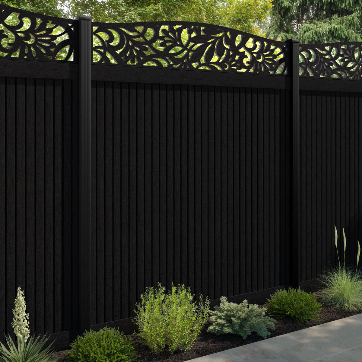 Virtis Heritage Curved Top Fence Panel Black - with our aluminium posts