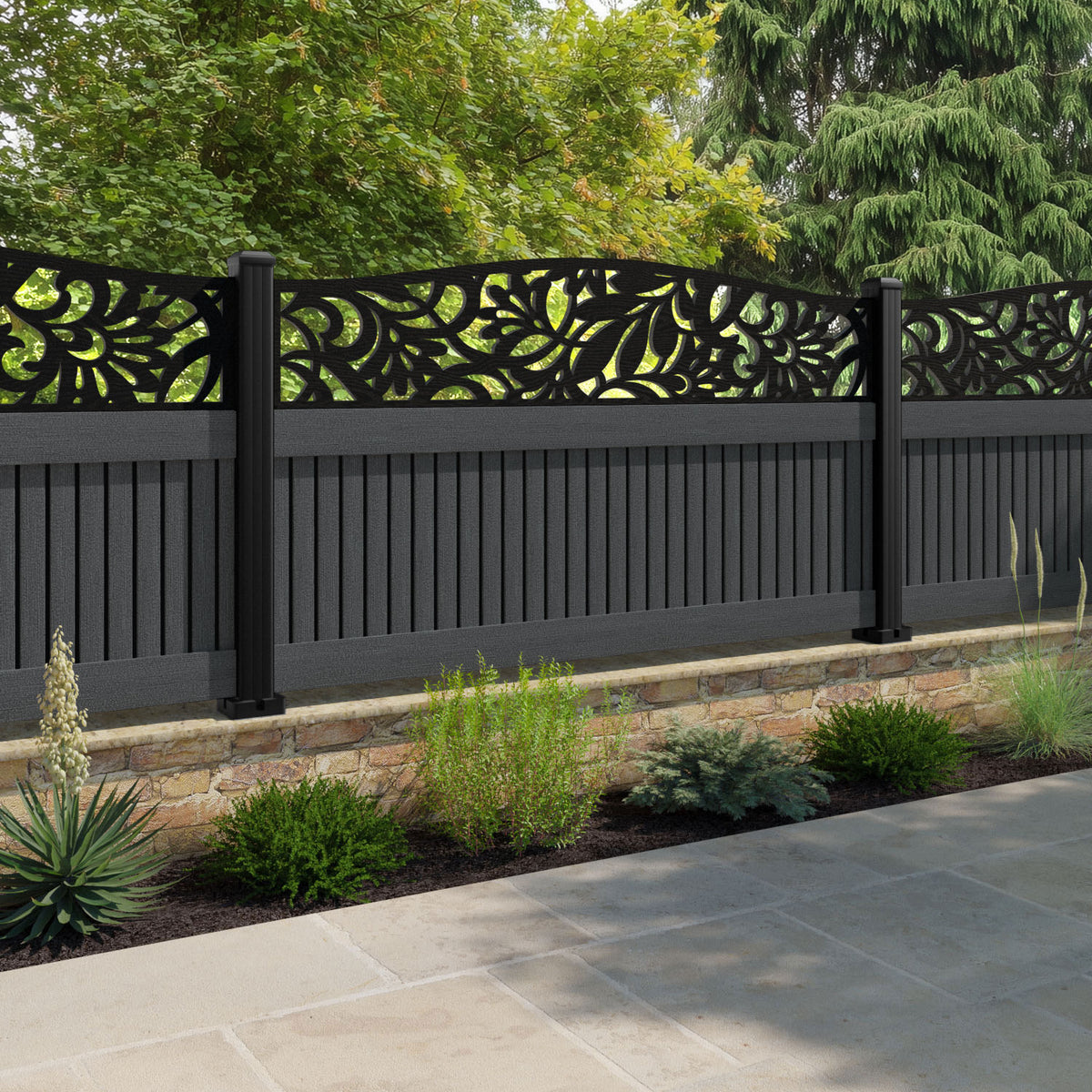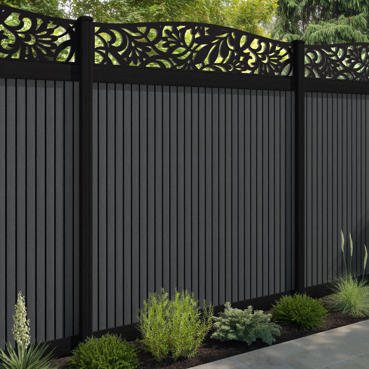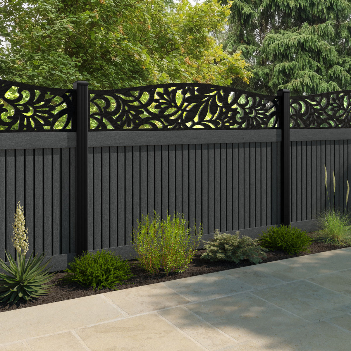 Virtis Heritage Curved Top Fence Panel Dark Grey - with our aluminium posts