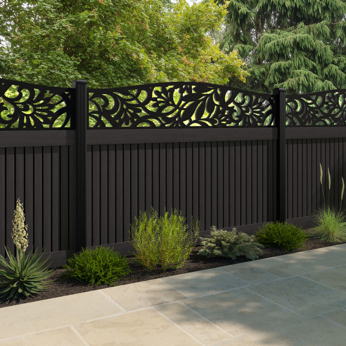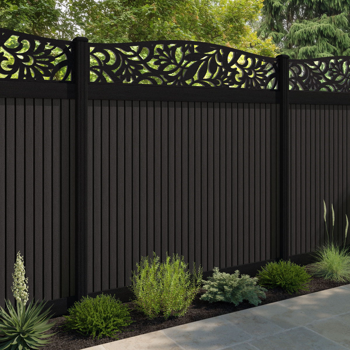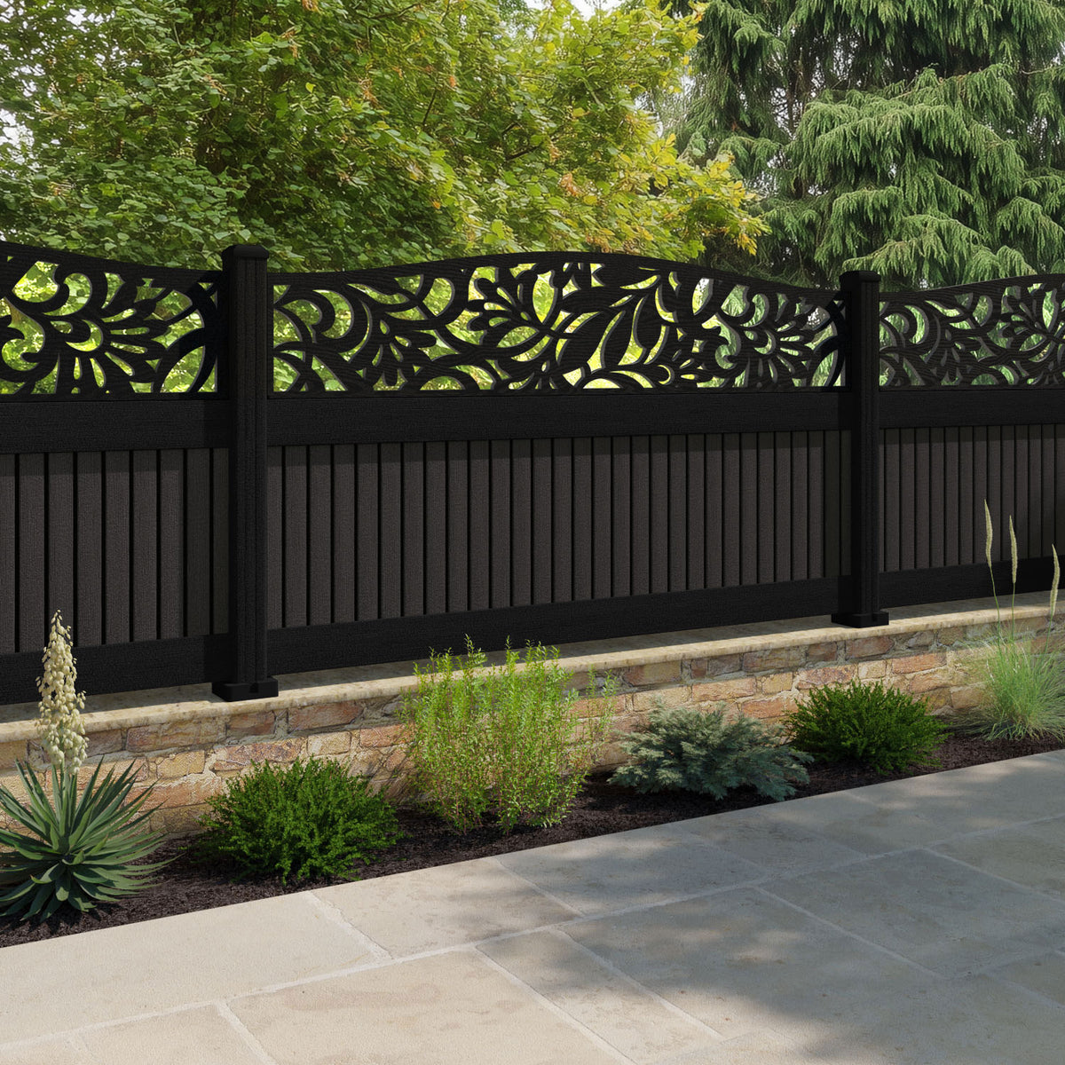 Virtis Heritage Curved Top Fence Panel Dark Oak - with our aluminium posts