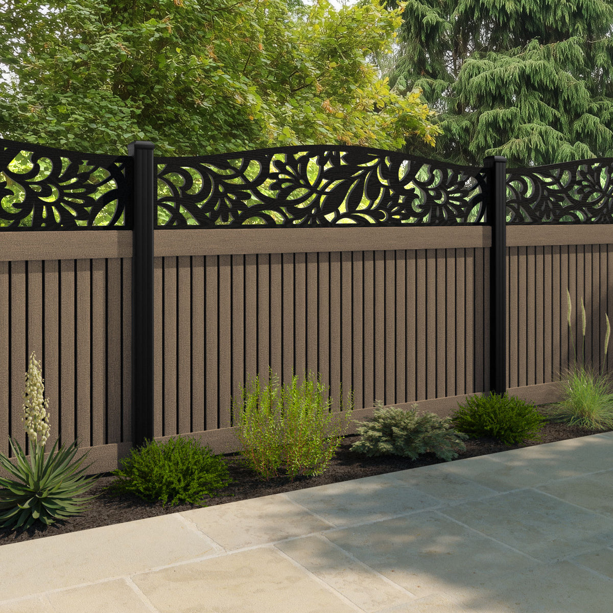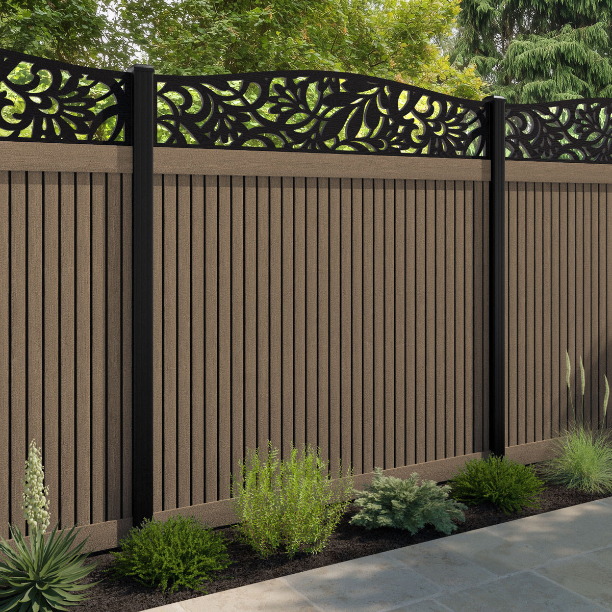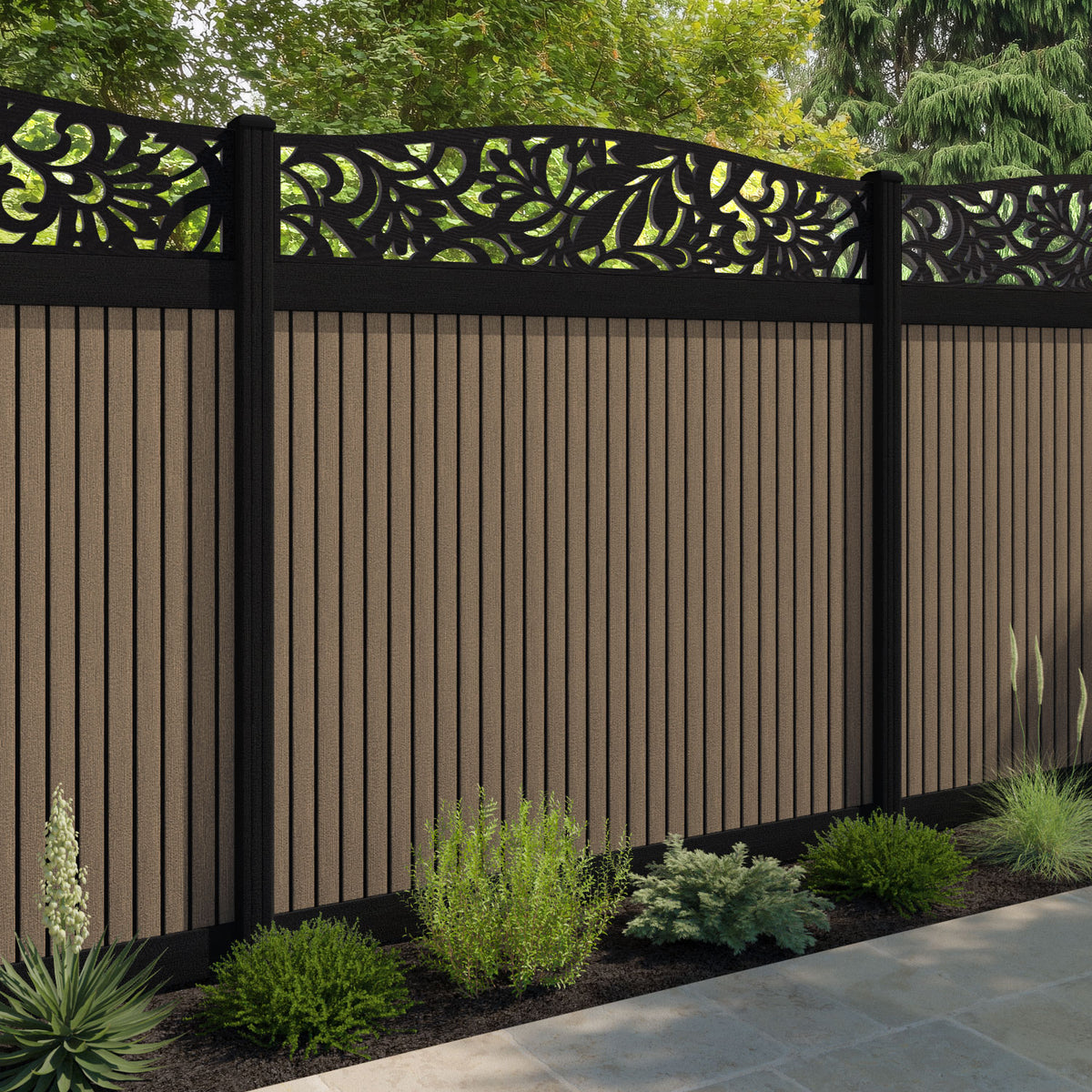 Virtis Heritage Curved Top Fence Panel Teak - with our aluminium posts