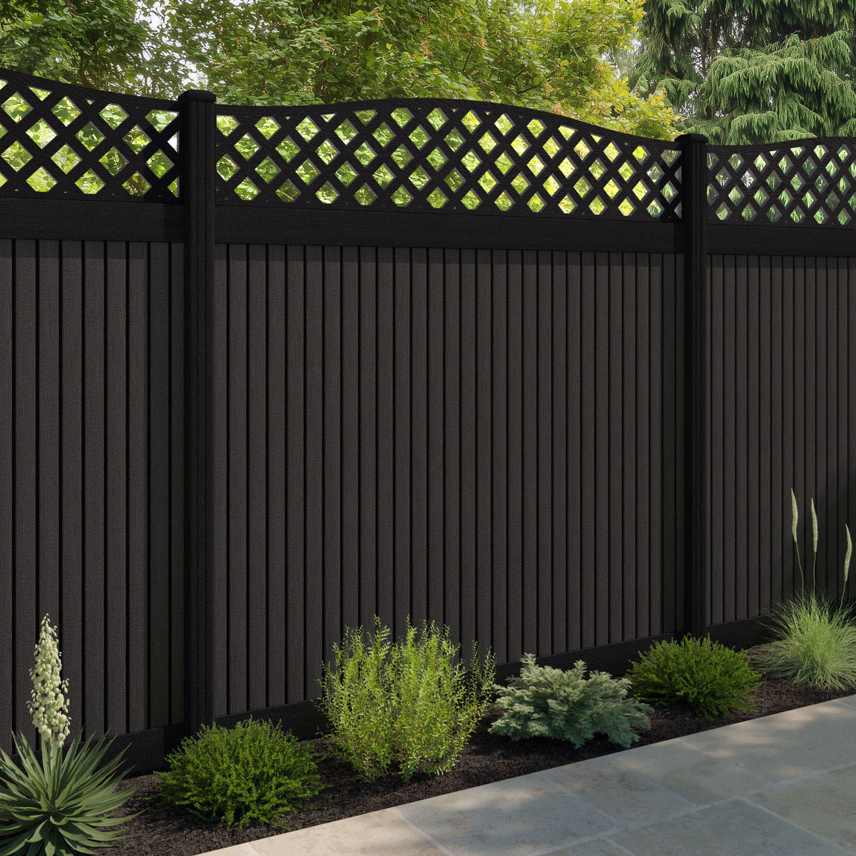 Virtis High Wave Fence Panel Dark Oak - with our aluminium posts