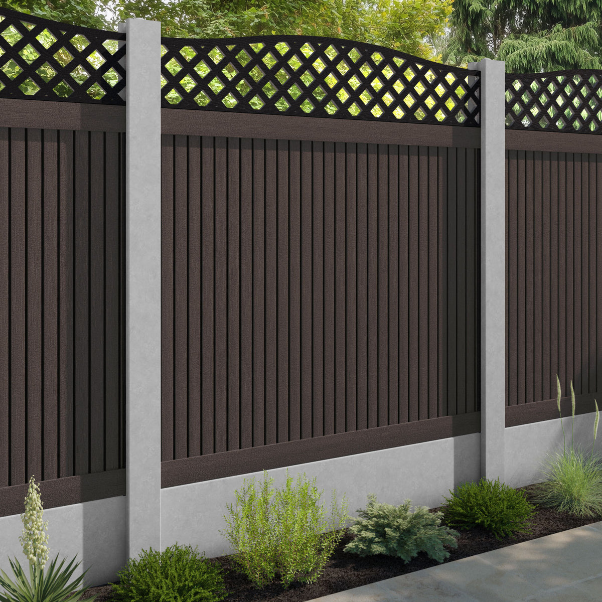 Virtis High Wave Fence Panel Mid Brown - for existing concrete posts