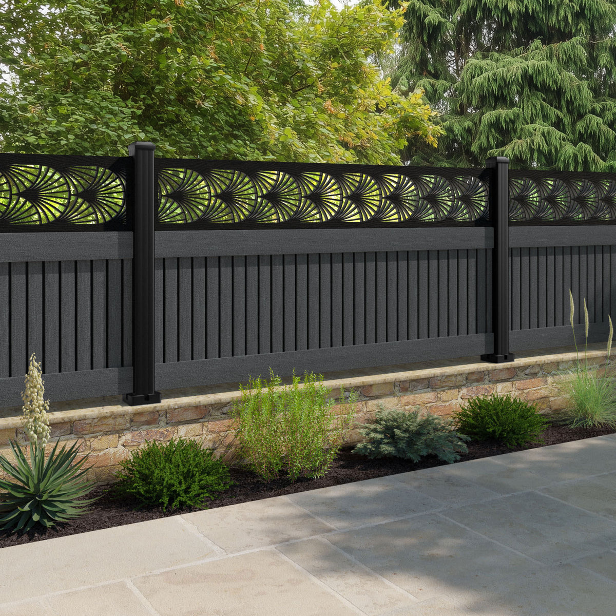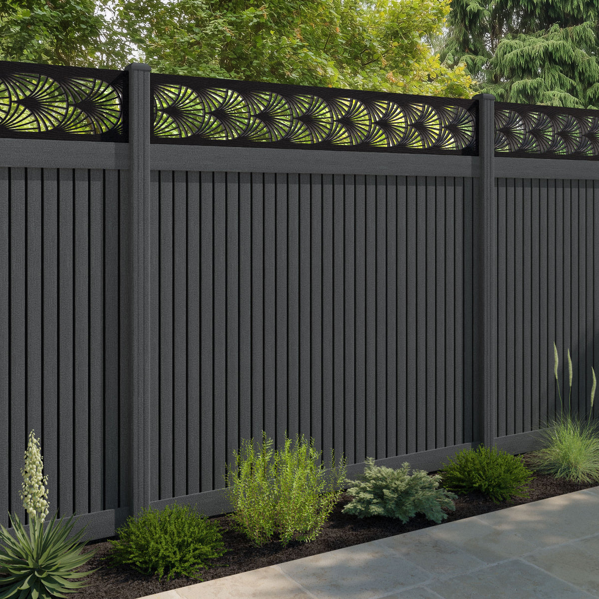 Virtis Laurel Fence Panel Dark Grey - with our composite posts