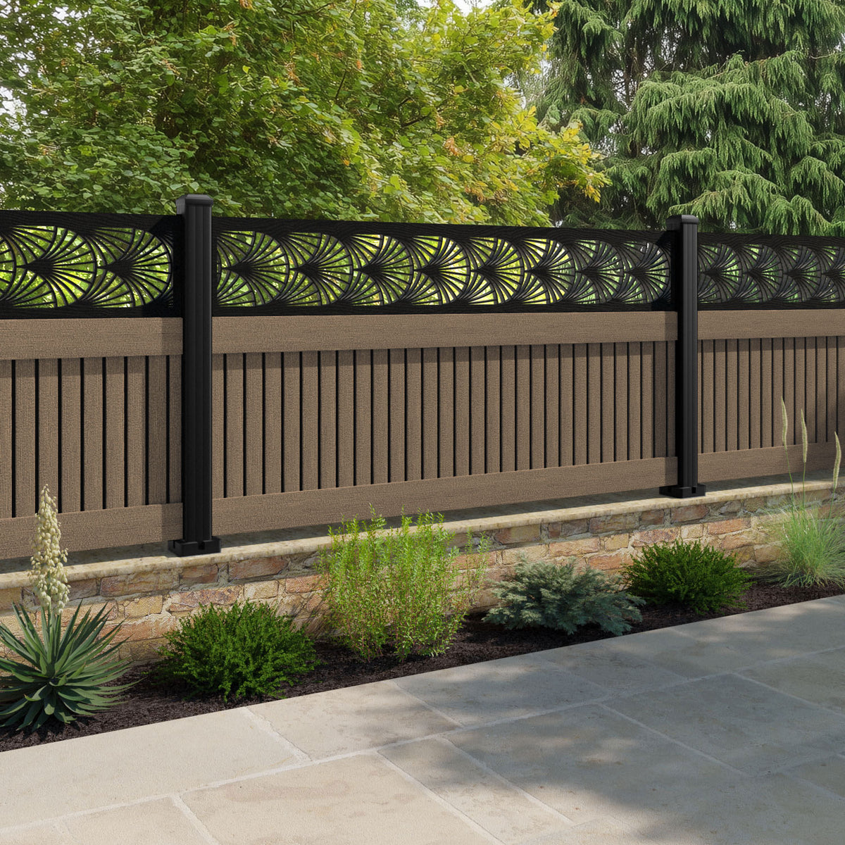 Virtis Laurel Fence Panel Teak - with our composite posts