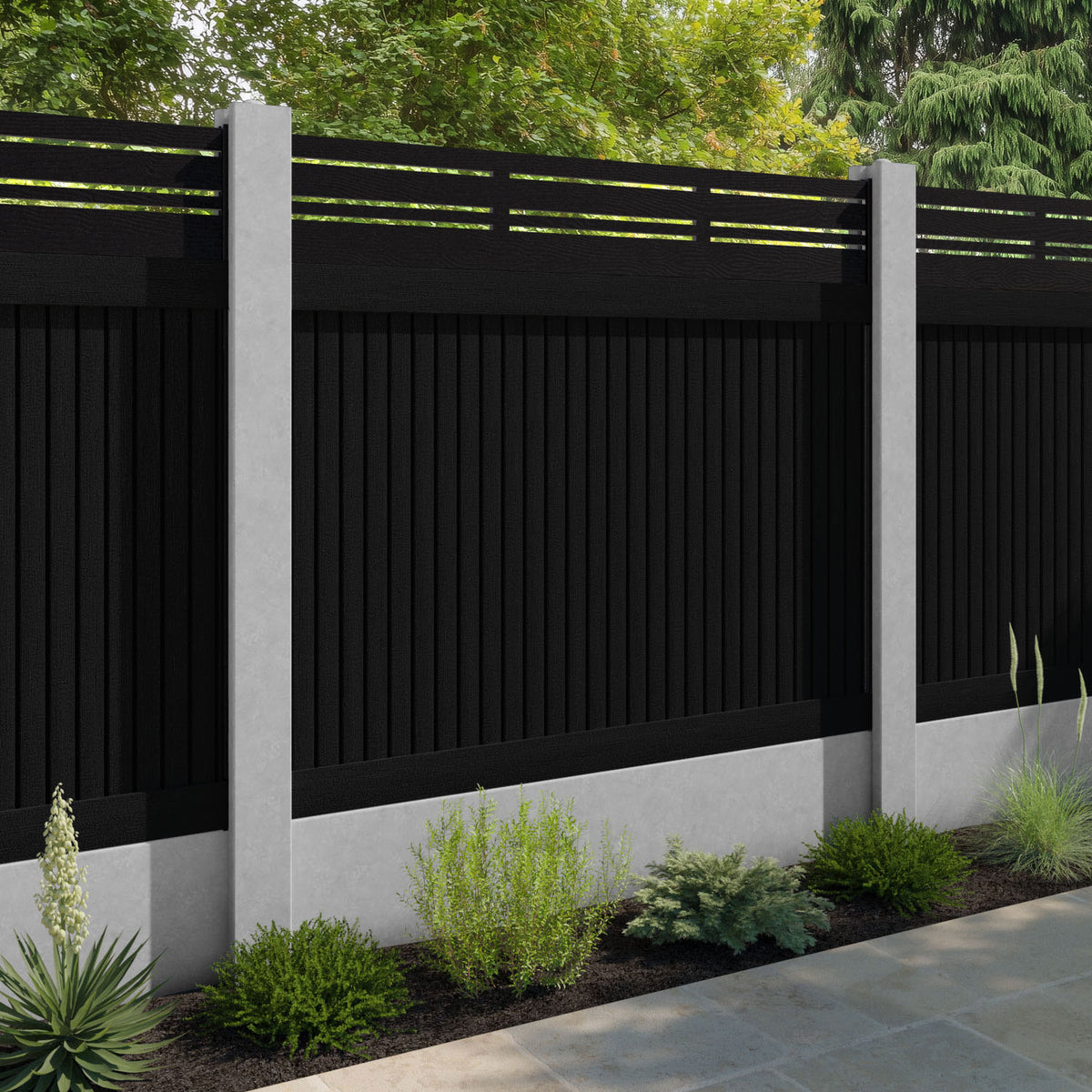 Virtis Linea Fence Panel Black - for existing concrete posts