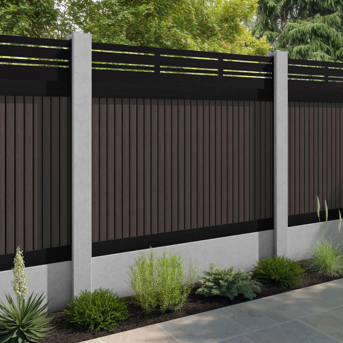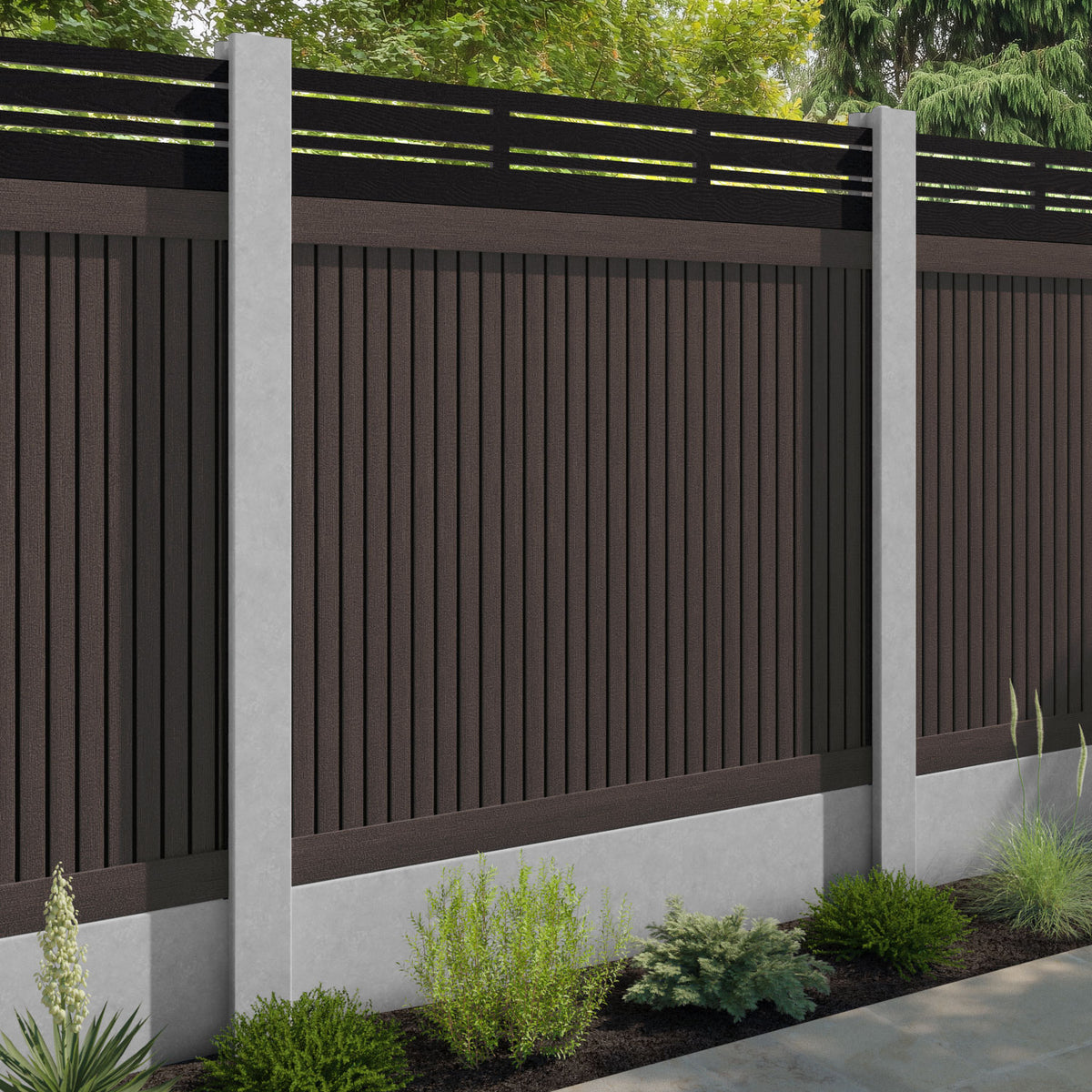 Virtis Linea Fence Panel Mid Brown - for existing concrete posts