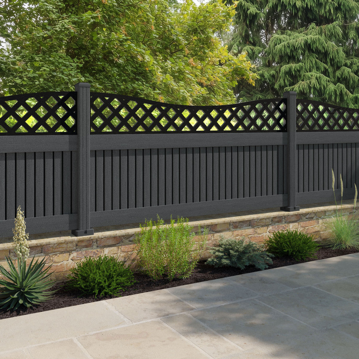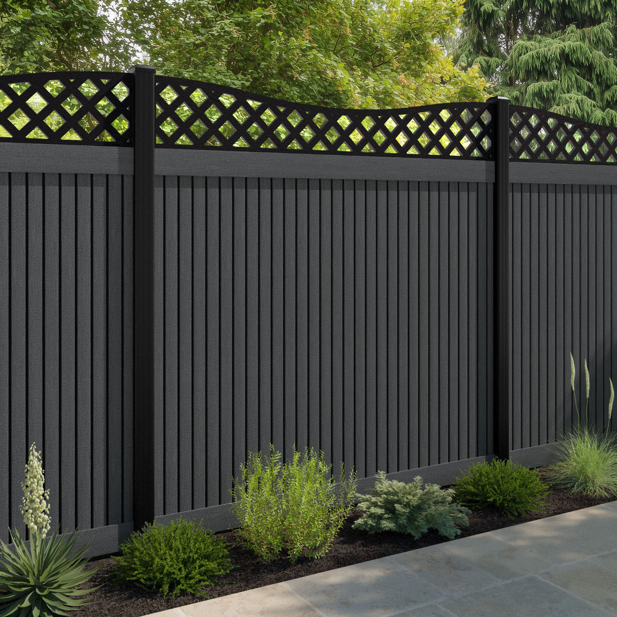 Virtis Low Wave Fence Panel Dark Grey - with our composite posts