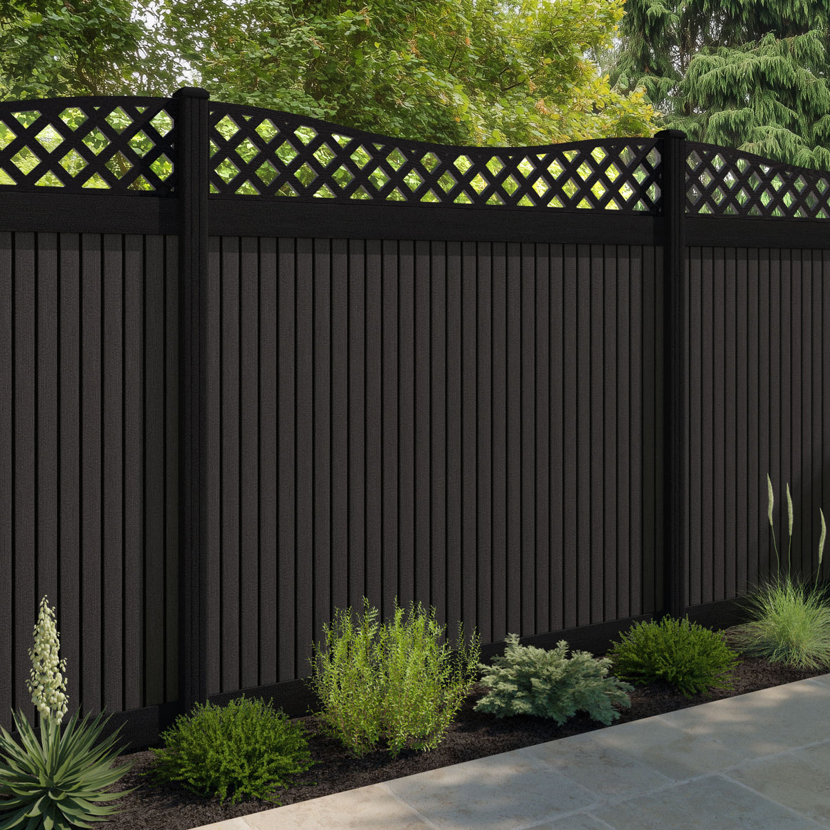 Virtis Low Wave Fence Panel Dark Oak - with our composite posts