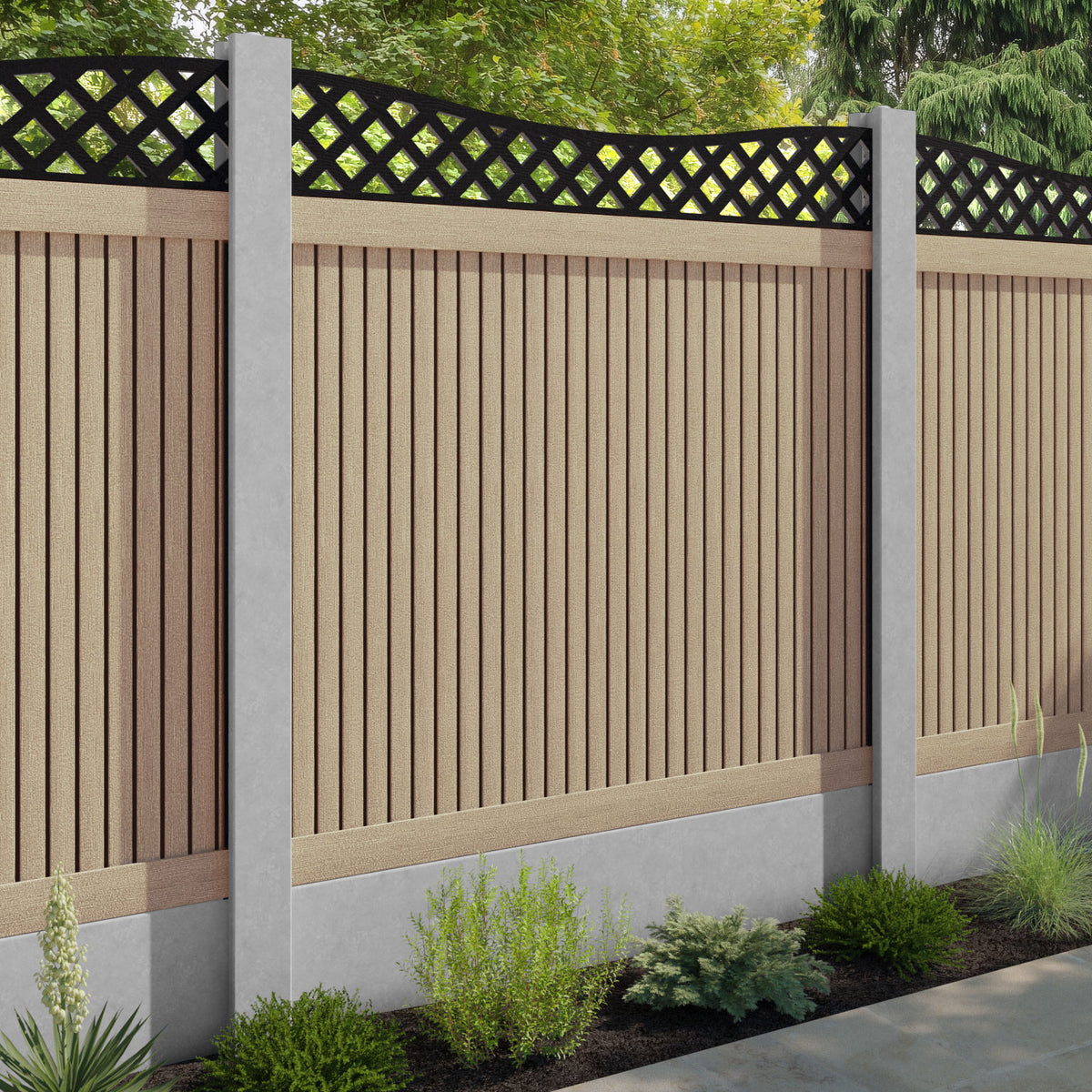 Virtis Low Wave Fence Panel Light Oak - for existing concrete posts