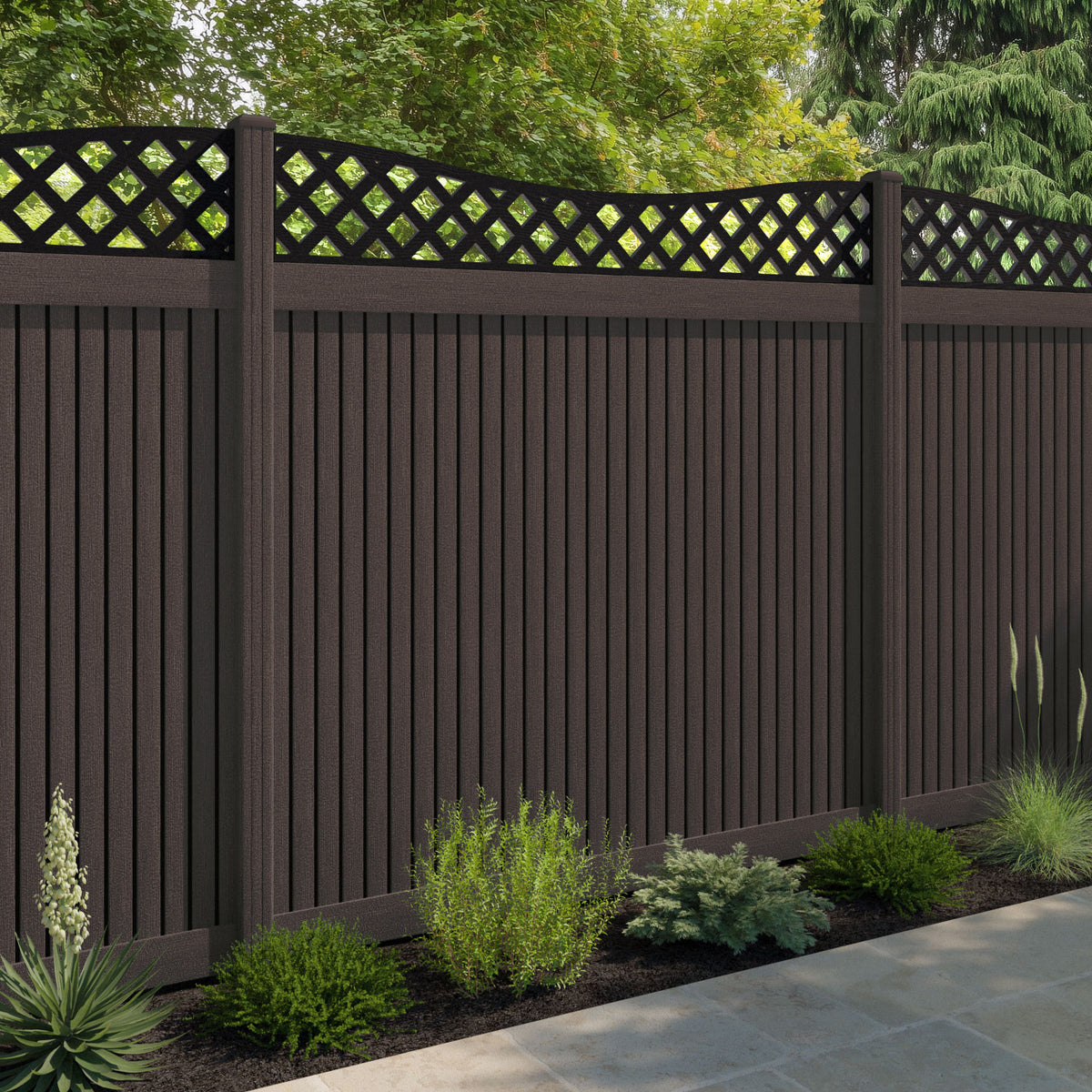 Virtis Low Wave Fence Panel Mid Brown - with our composite posts