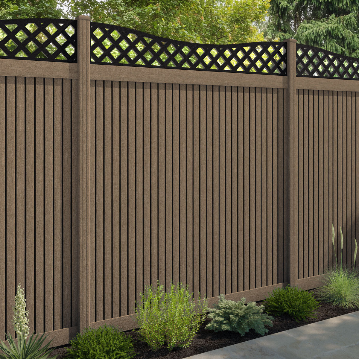 Virtis Low Wave Fence Panel Teak - with our composite posts