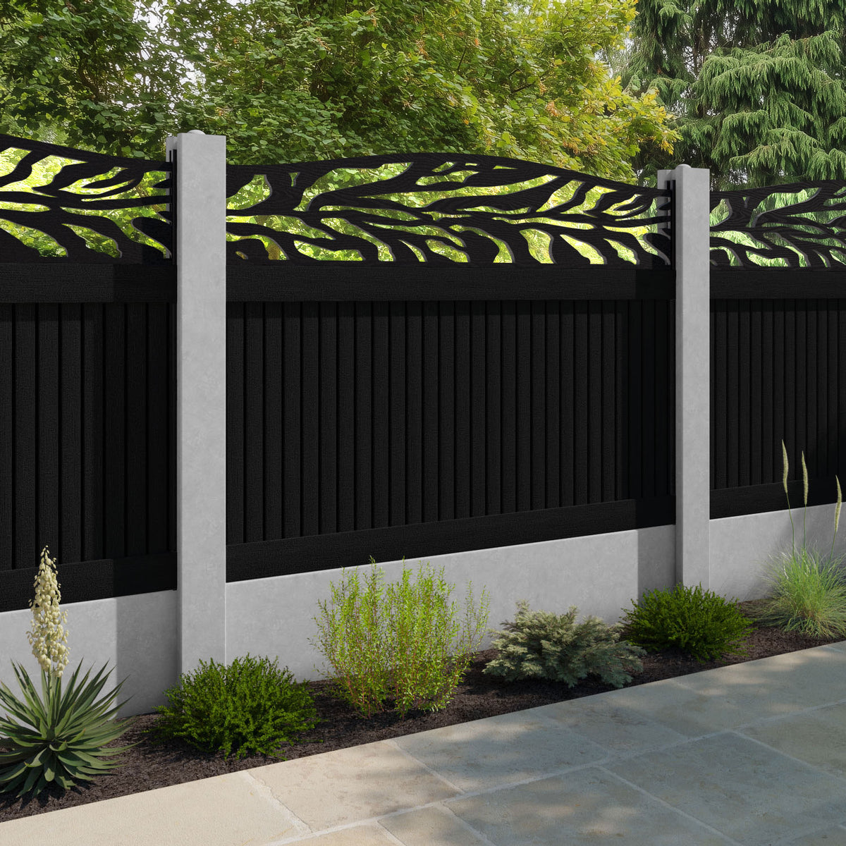 Virtis Malawi Curved Top Fence Panel Black - for existing concrete posts