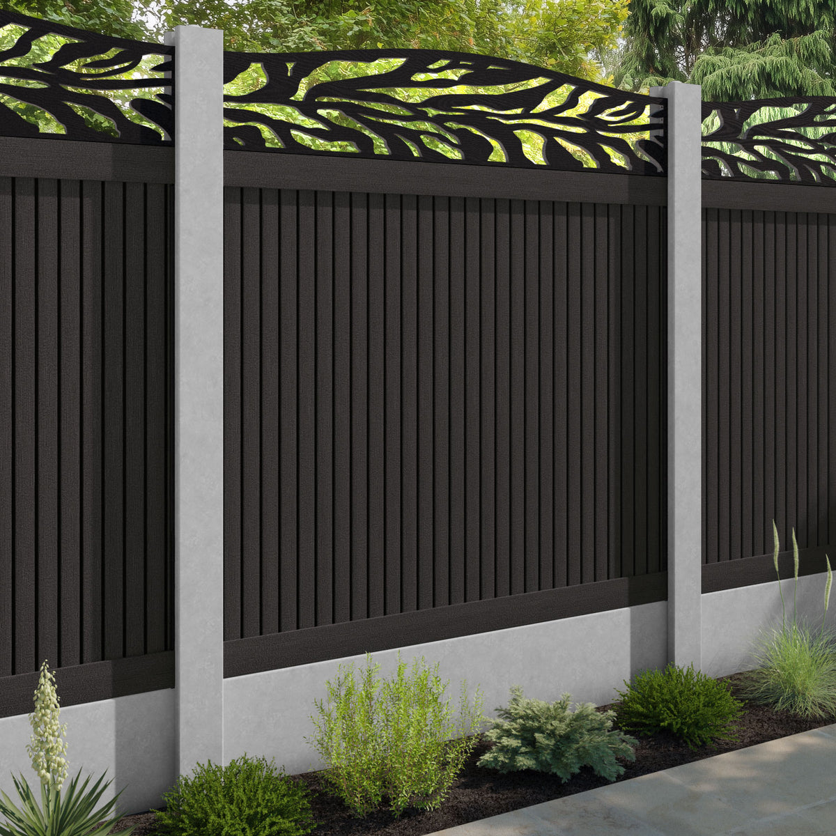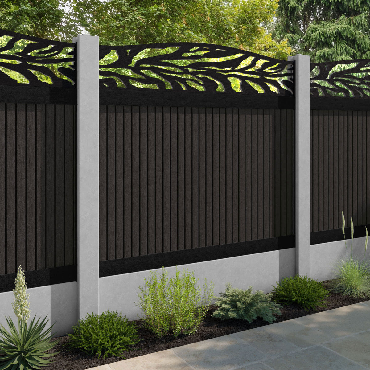 Virtis Malawi Curved Top Fence Panel Dark Oak - for existing concrete posts