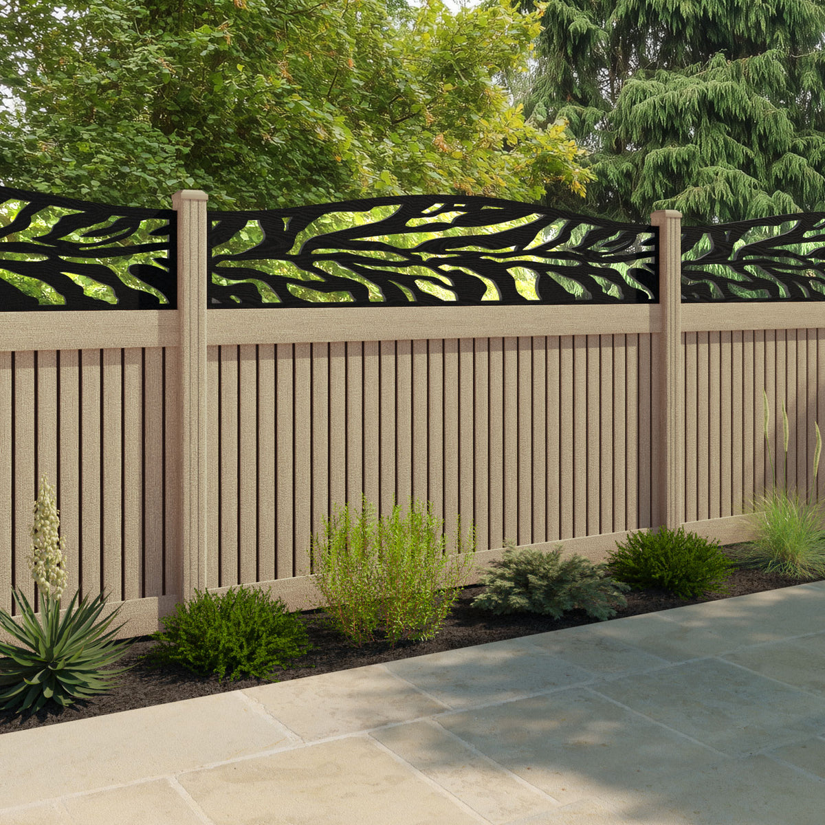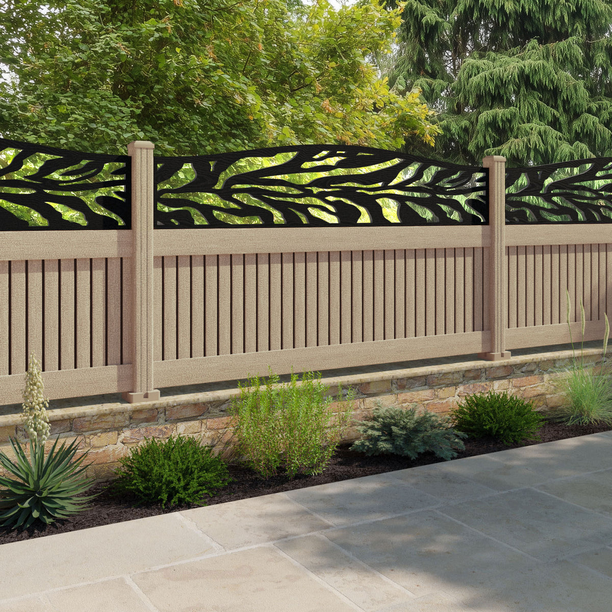 Virtis Malawi Curved Top Fence Panel Light Oak - with our composite posts