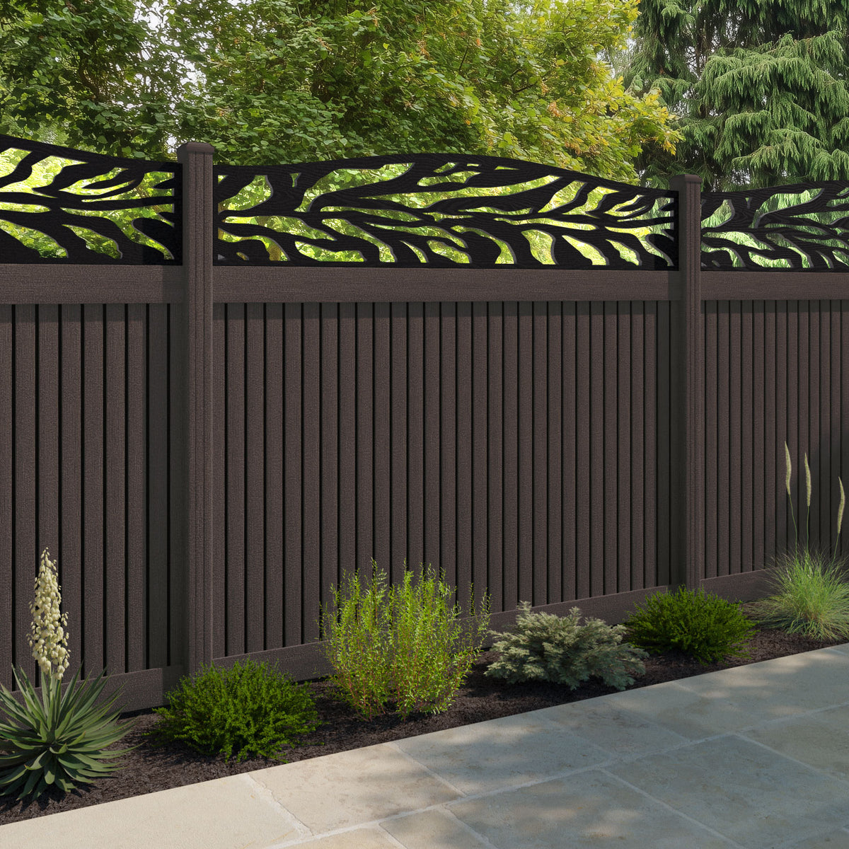 Virtis Malawi Curved Top Fence Panel Mid Brown - with our composite posts