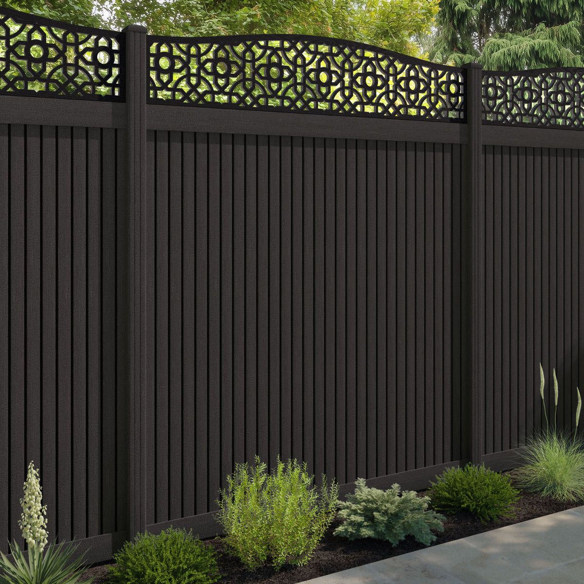 Virtis Nabila Curved Top Fence Panel Dark Oak - with our composite posts