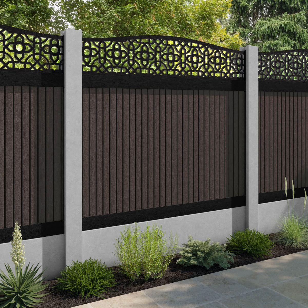Virtis Nabila Curved Top Fence Panel Mid Brown - for existing concrete posts