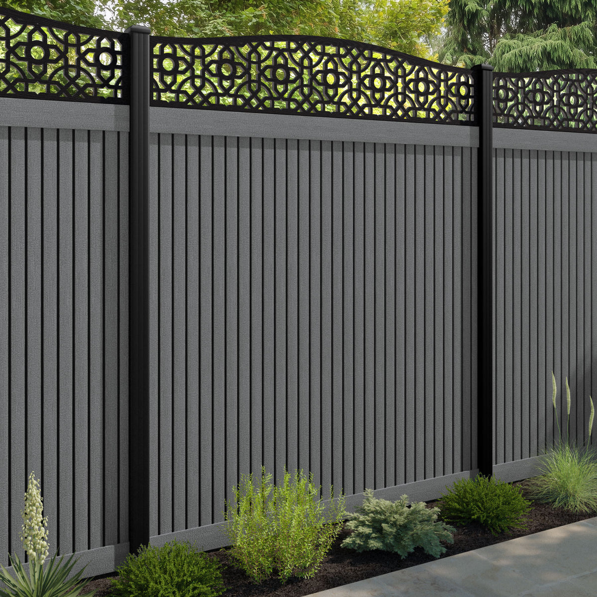 Virtis Nabila Curved Top Fence Panel Mid Grey - with our composite posts