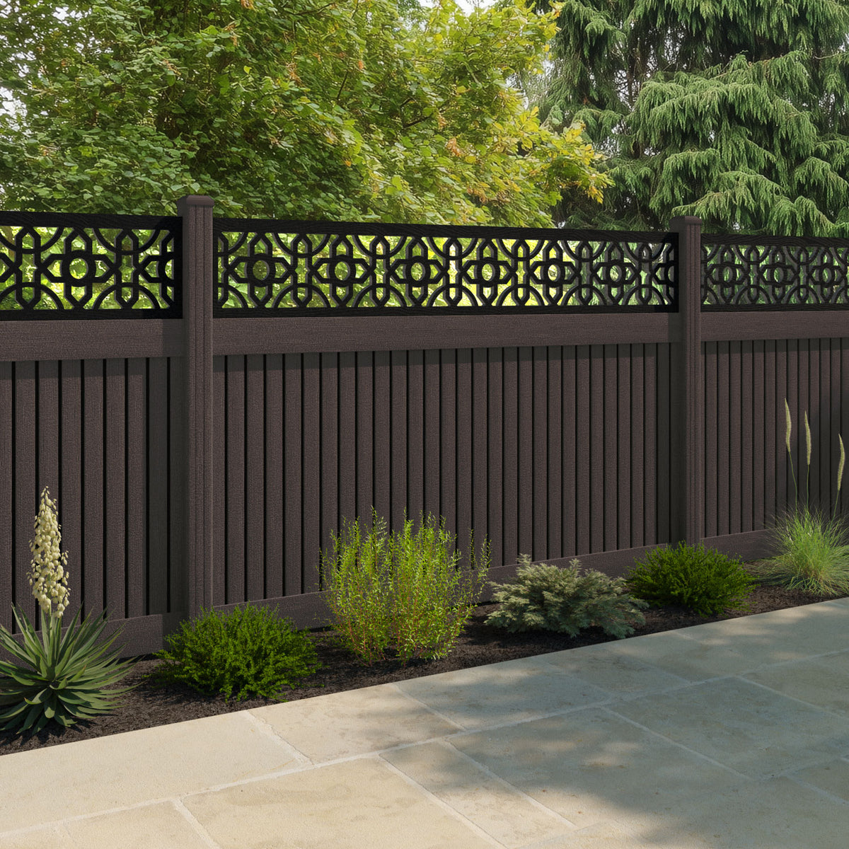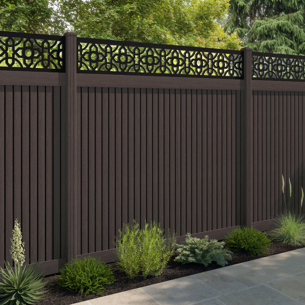 Virtis Nabila Fence Panel Mid Brown - with our composite posts