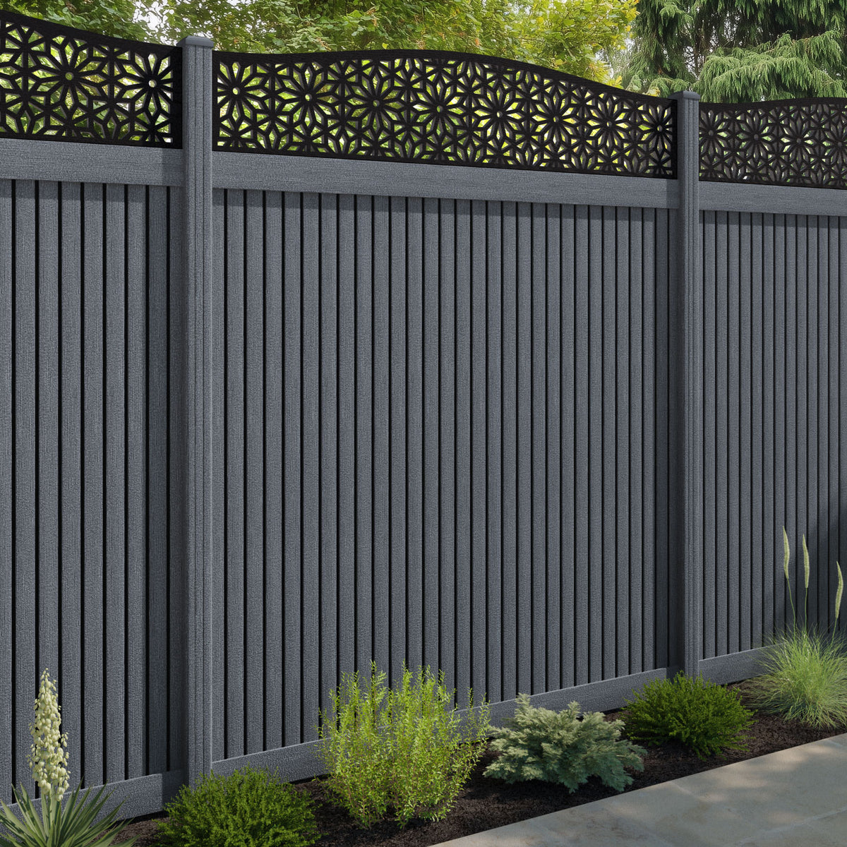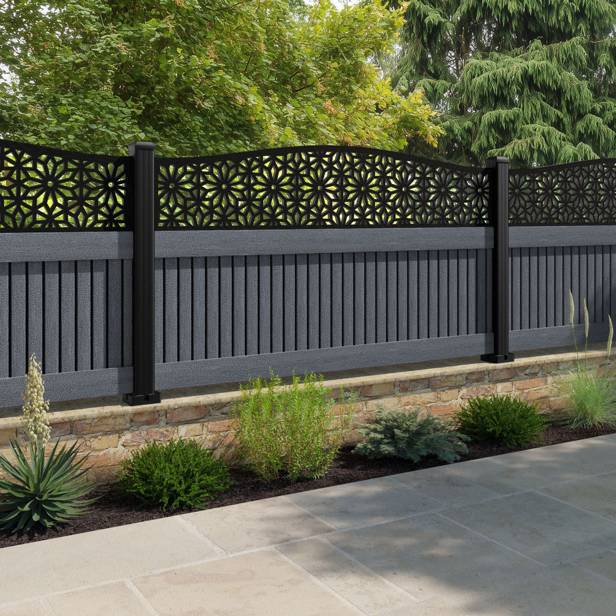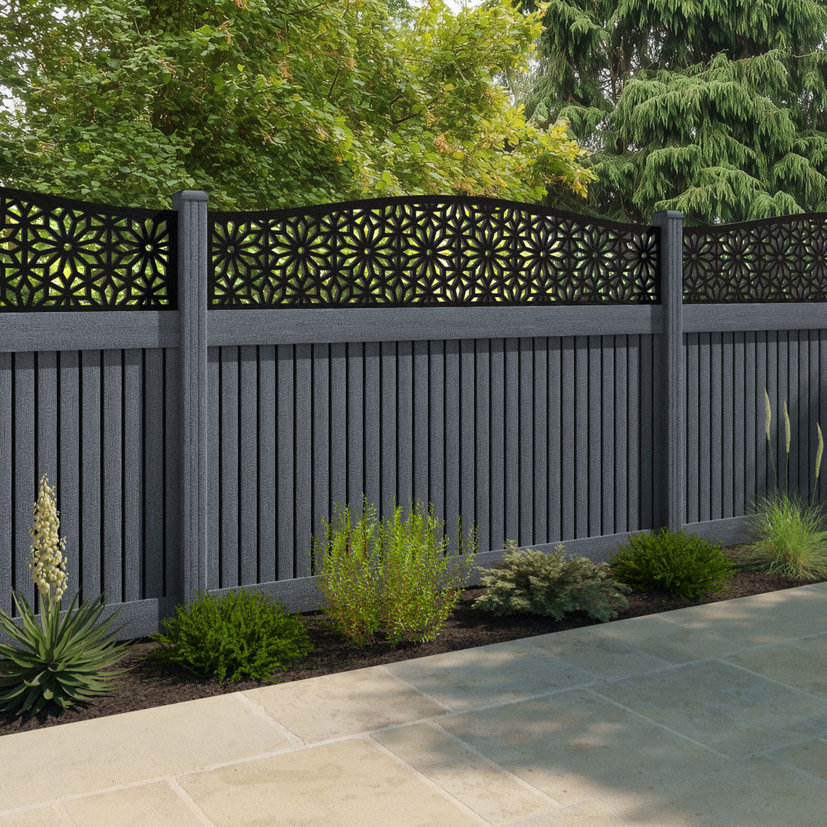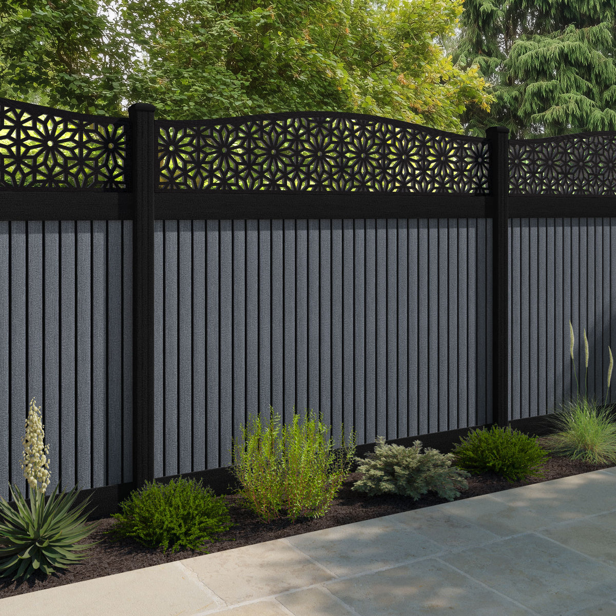Virtis Narwa Curved Top Fence Panel Anthracite - with our composite posts