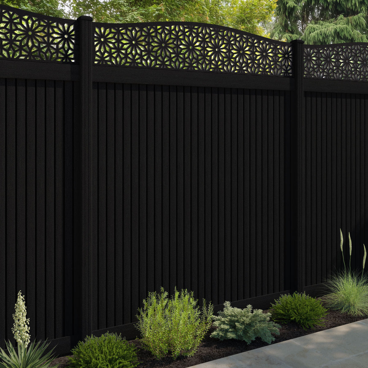 Virtis Narwa Curved Top Fence Panel Black - with our composite posts