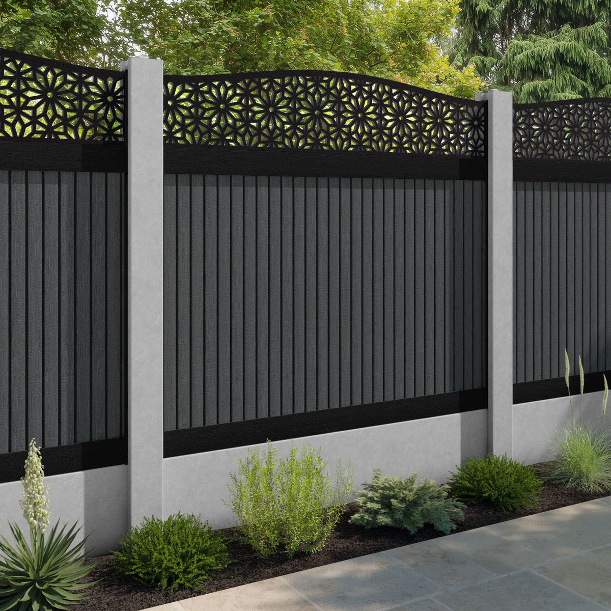 Virtis Narwa Curved Top Fence Panel Dark Grey - for existing concrete posts