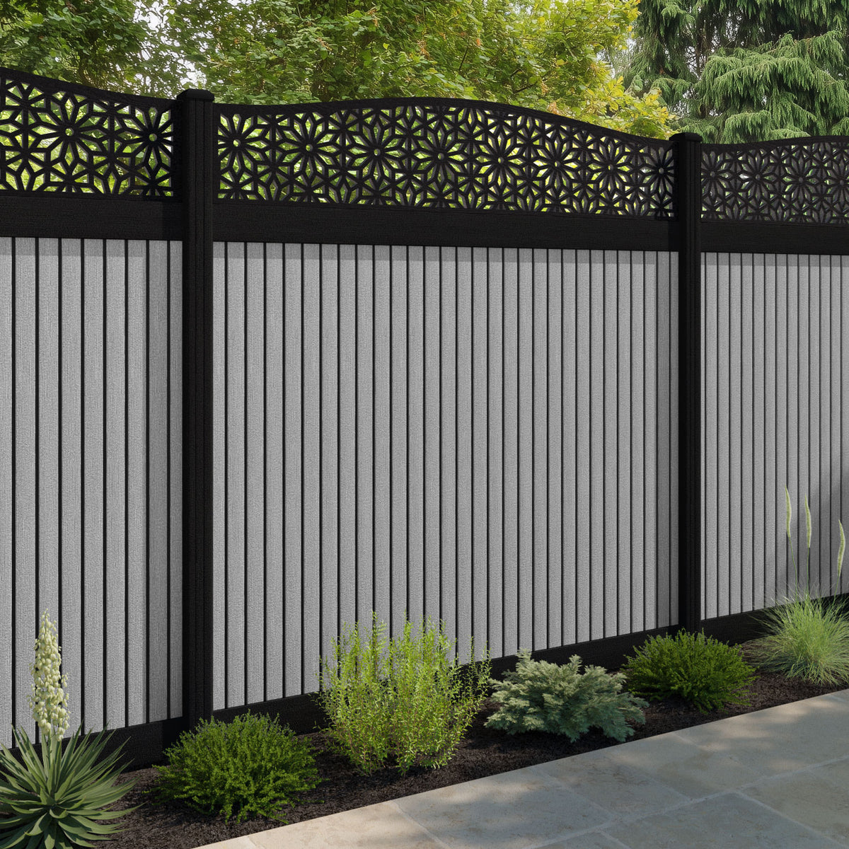 Virtis Narwa Curved Top Fence Panel Light Grey - with our aluminium posts