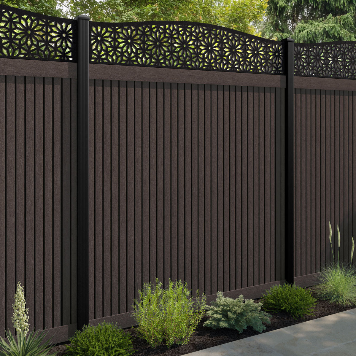 Virtis Narwa Curved Top Fence Panel Mid Brown - with our aluminium posts