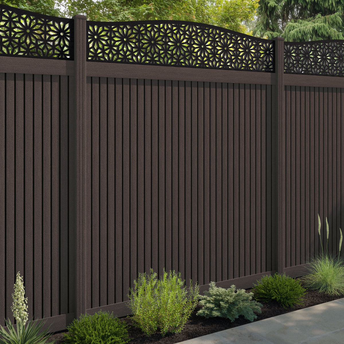 Virtis Narwa Curved Top Fence Panel Mid Brown - with our composite posts