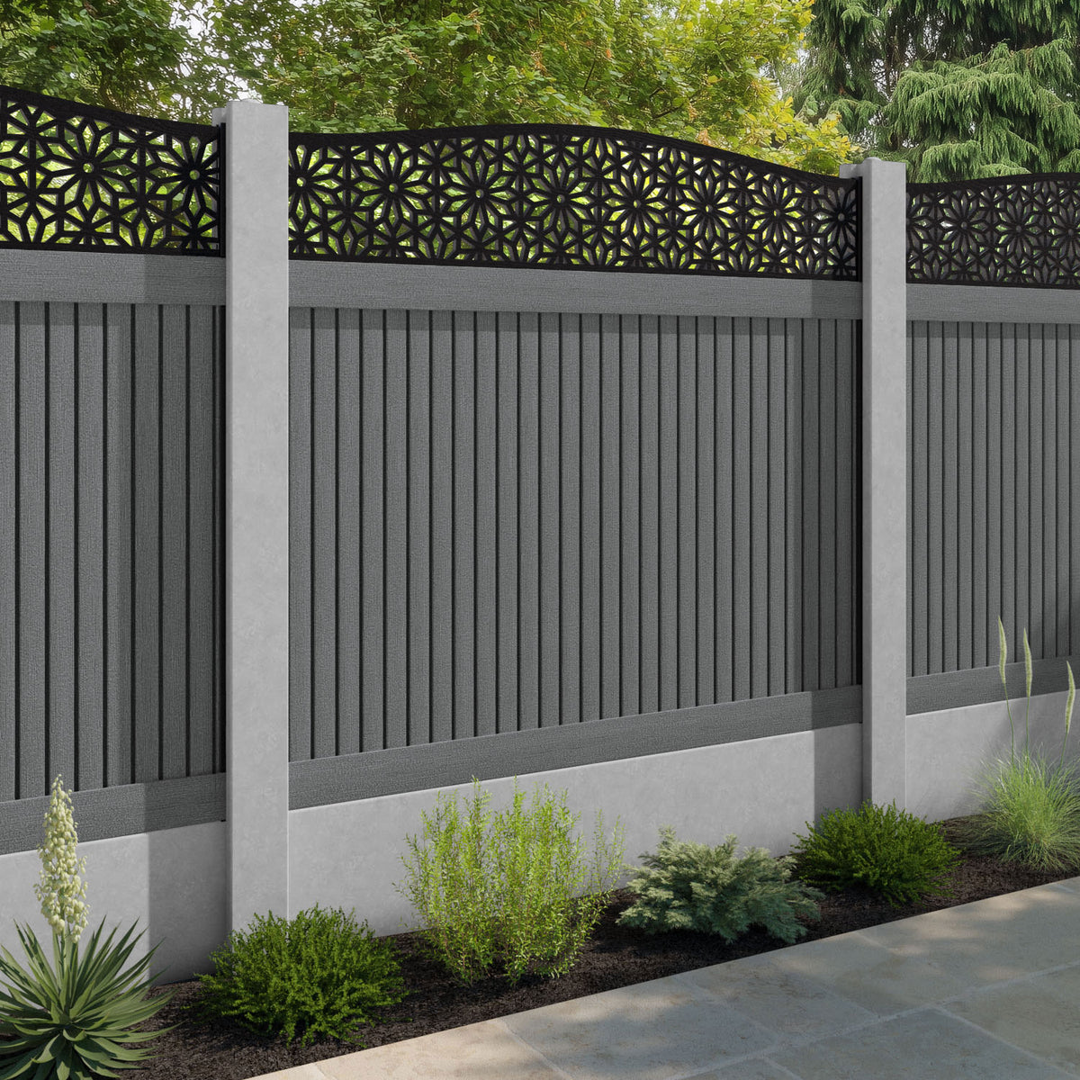 Virtis Narwa Curved Top Fence Panel Mid Grey - for existing concrete posts