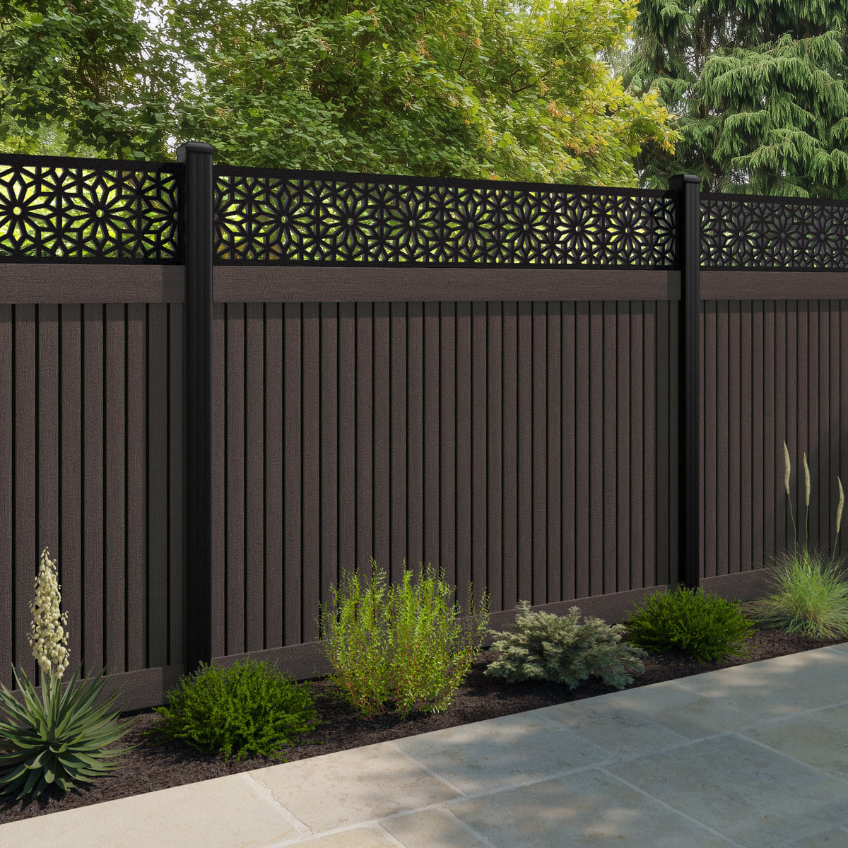 Virtis Narwa Fence Panel Mid Brown - with our composite posts