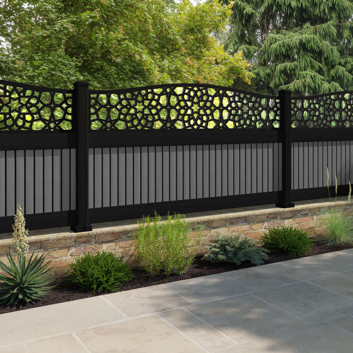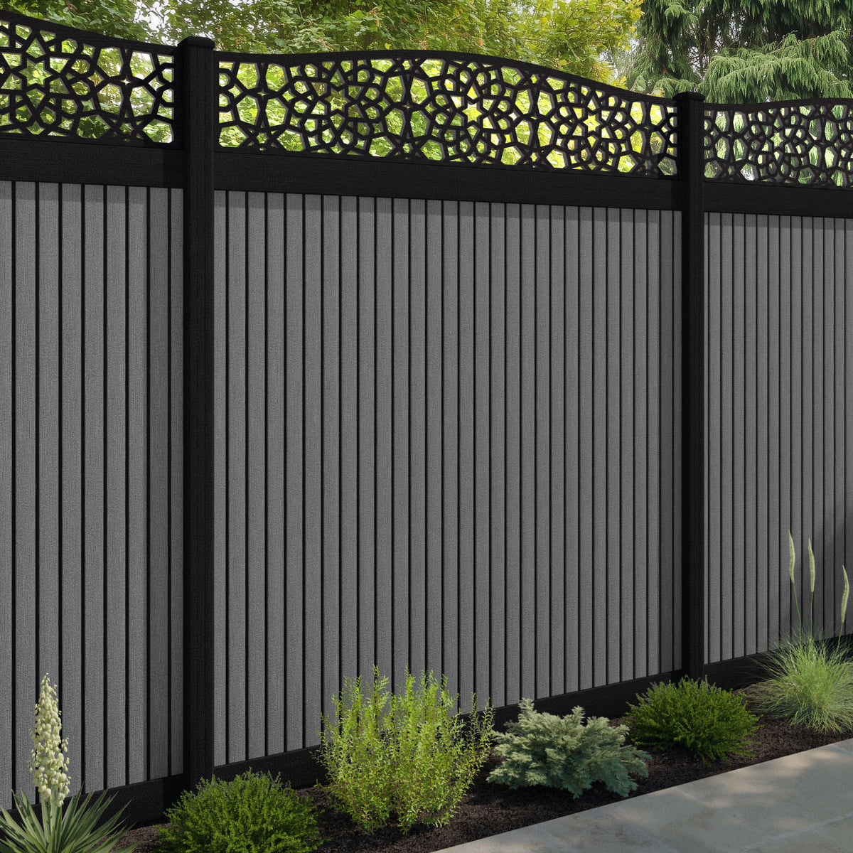 Virtis Nazira Curved Top Fence Panel Mid Grey - with our aluminium posts